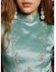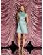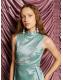 Bathed in the glow of a thousand tiny lights, this taffeta mini shimmers like a secret whispered beneath a crystal chandelier. The gem embellishments sparkle with every step, while pleated sides invite a twirl, as though the night itself were your stage.