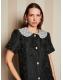 A playful mini dress adorned with a shimmering organza collar. Designed for adventure and joy, perfect for a modern day treasure hunt.