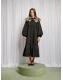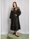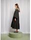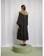 The clever black dress – A flowing popeline maxi with balloon sleeves, dressed up with a removable Peter Pan collar in cheeky cheetah faux fur. Tie it on for an instant twist, or wear without for quiet sophistication. Always ready for after-class adventures. Exclusively available on Sister Jane.