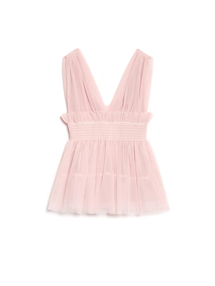Layers of tulle float like celestial dust, light as a sigh and twice as enchanting. Its tiered silhouette moves with a gentle rhythm, as though it knows the choreography of dreams. Pair with the Satine Velvet Trousers.
