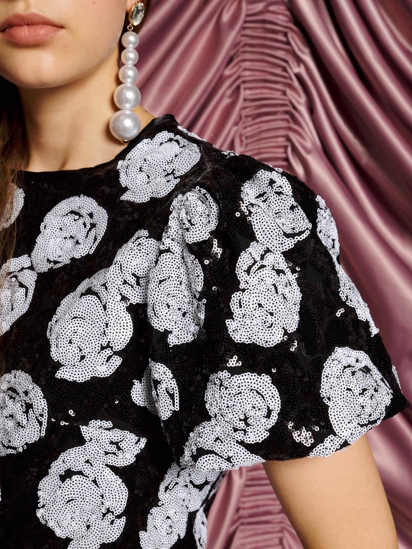 Daring, delicate and divine. Cropped and captivating, this rose sequinned top is pure enchantment. Its open back ties like a promise to the night. Pair with the Roxie Rose Sequin Midi Skirt for the perfect starlit moment.