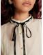 The Encore Blouse knows how to make an entrance, soft woven fabric finished with pearl buttons, satin ties, and delicate trims. The performance is all in the details. Finish the performance off with the Ripple Bow Embellished Trousers