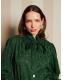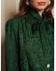Loose, dreamy, and adorned with a necktie that drifts like a ribbon of nostalgia. Pearl and gem buttons gleam like afternoon sun on antique glass on the Vanity Jacquard Blouse.