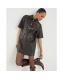 Brown Faux Leather Pocket Detail Shirt Dress