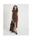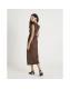 Brown Faux Suede Sleeveless Drape Midi Dress