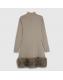 Beige Knitted Faux Fur hem Mini dress