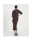 Brown Short Sleeve Cosy Ribbed Midi Dress