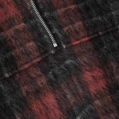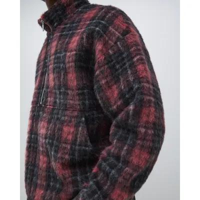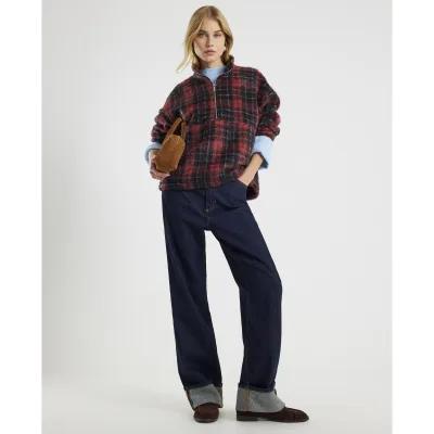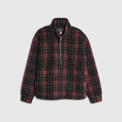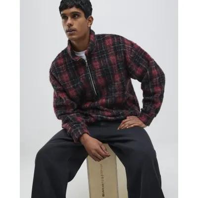 Red Check Oversized Zip Fleece Sweatshirt