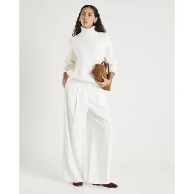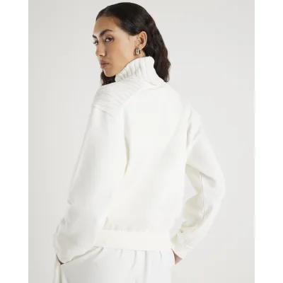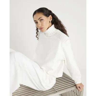 Cream Roll Neck Hybrid Knit Sweatshirt