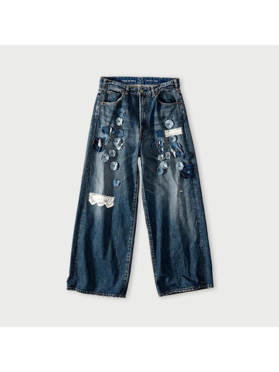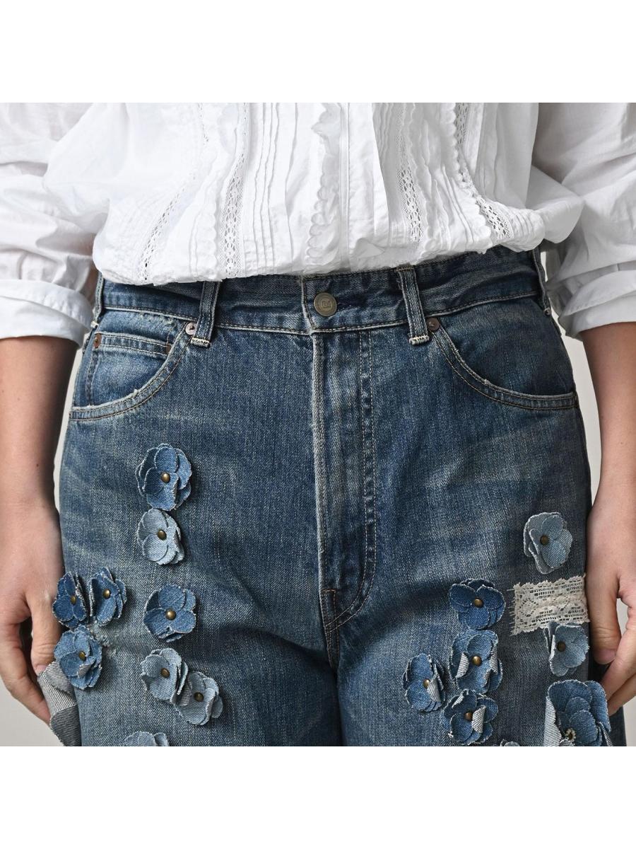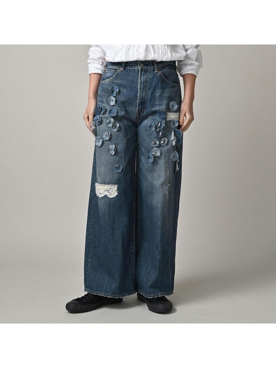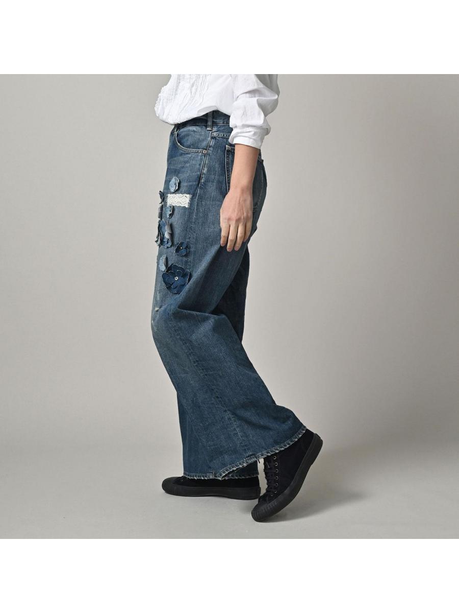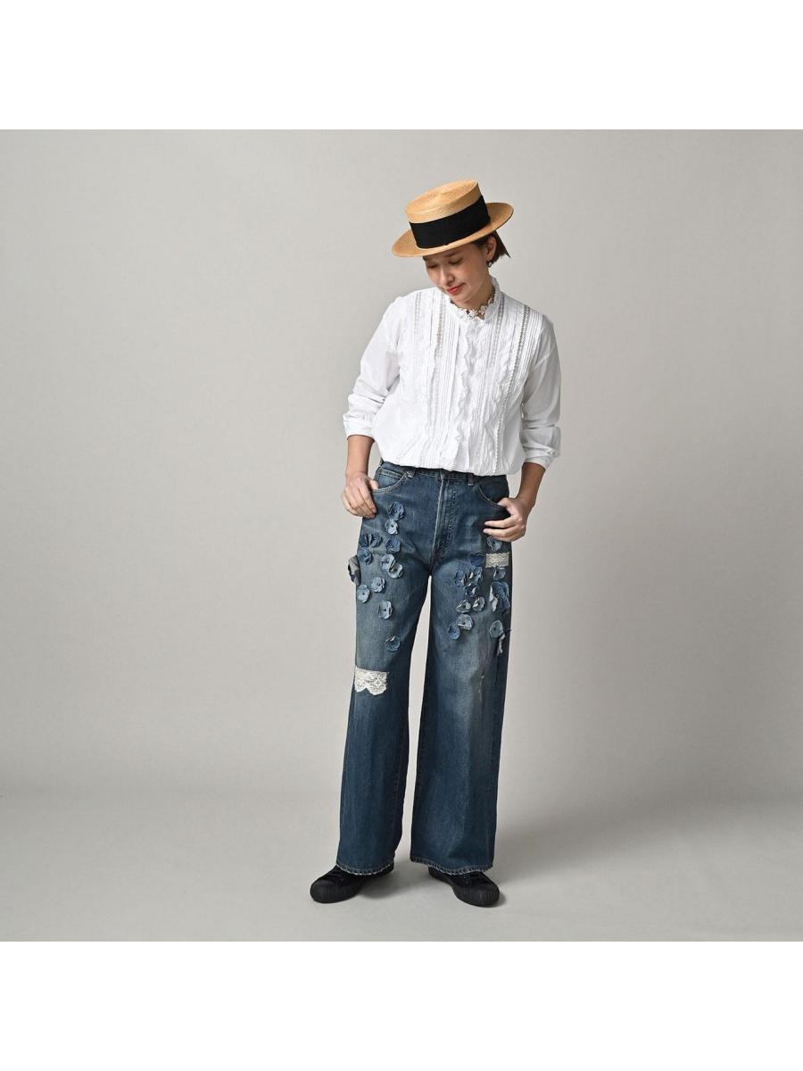 ライ麦デニムのバチ比女 遖加工(フルール・重)