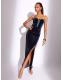 Lipsy Navy Velvet Crystal Embellished Trim Bandeau Maxi Dress