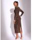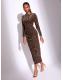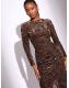 Lipsy Chocolate Brown Long Sleeve Velvet Devore Midi Dress