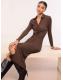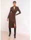 Lipsy Chocolate Brown Textured Jersey Knot Midi Shirt Dress