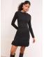 Lipsy Black Boat Neck Scallop Detail Long Sleeve Knit Mini Dress