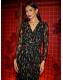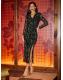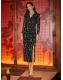 Yumi Black Metallic Sparkle Mesh Wrap Midi Dress