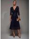 Jolie Moi Blue Lace Long Sleeve Midi Dress