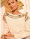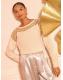 Love & Roses Ivory Gold Sequin Embellished Slash Neck Knitted Jumper