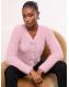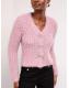Lipsy Pink V-Neck Textured Tinsel Embellished Bow Buttoned Knit Cardigan
