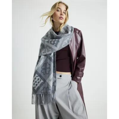 Grey Tile Monogram Print Scarf