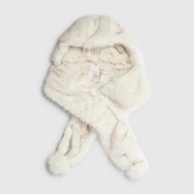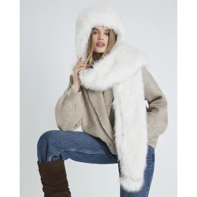 Cream Faux Fur Hooded Scarf