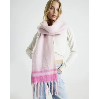 Pink Tassel Edge Fluffy Scarf