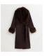 Dark Brown Faux Fur Trimmed Faux Suede Coat