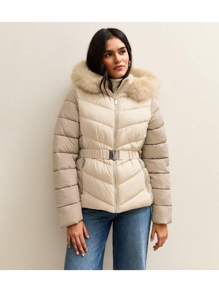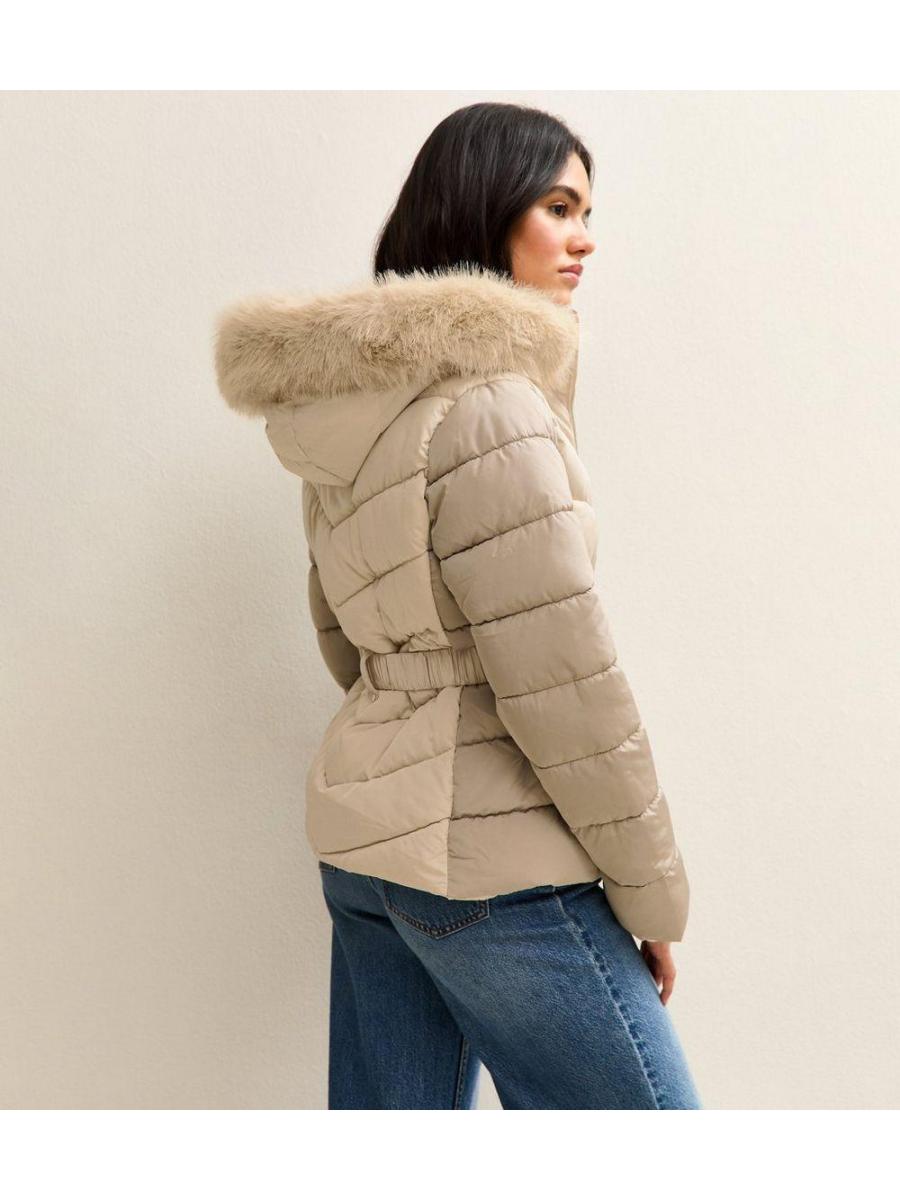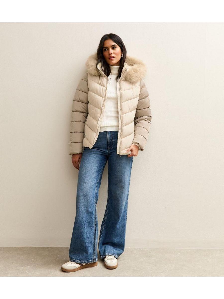 Mink Contrast Sleeve Faux Fur Hood Ski Puffer Jacket
