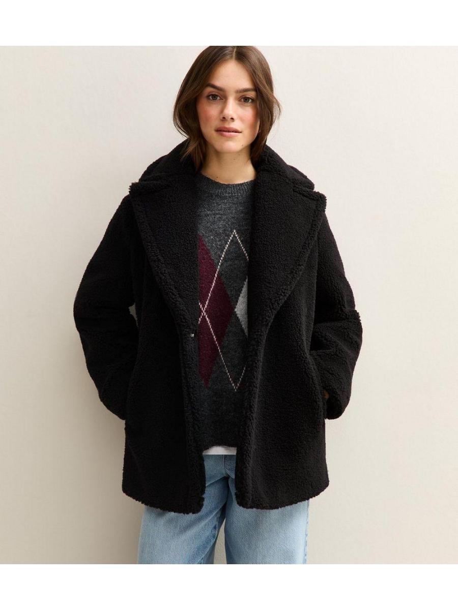 Petite Black Borg Coat