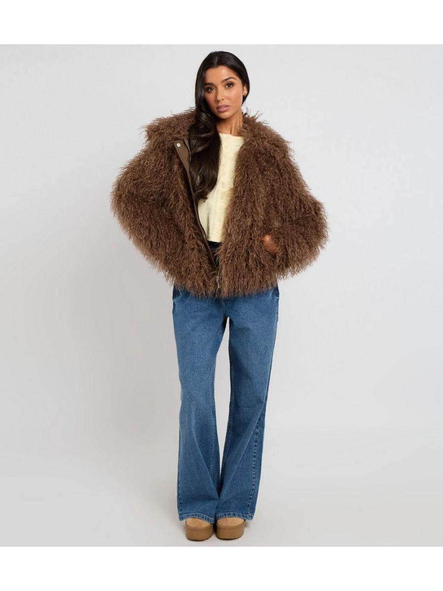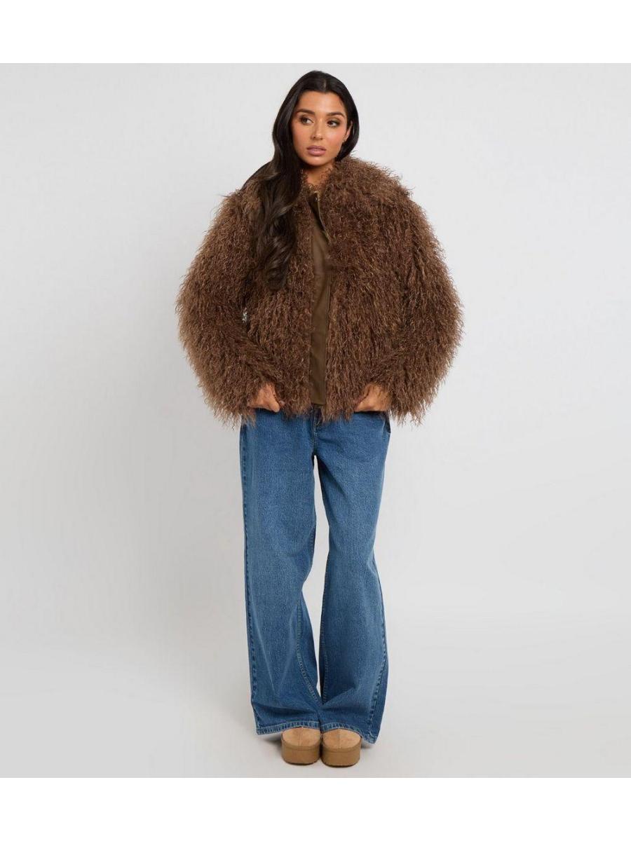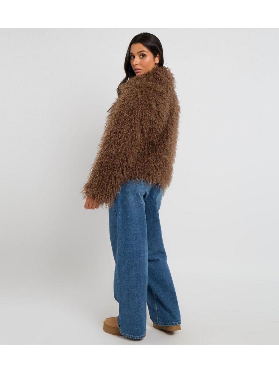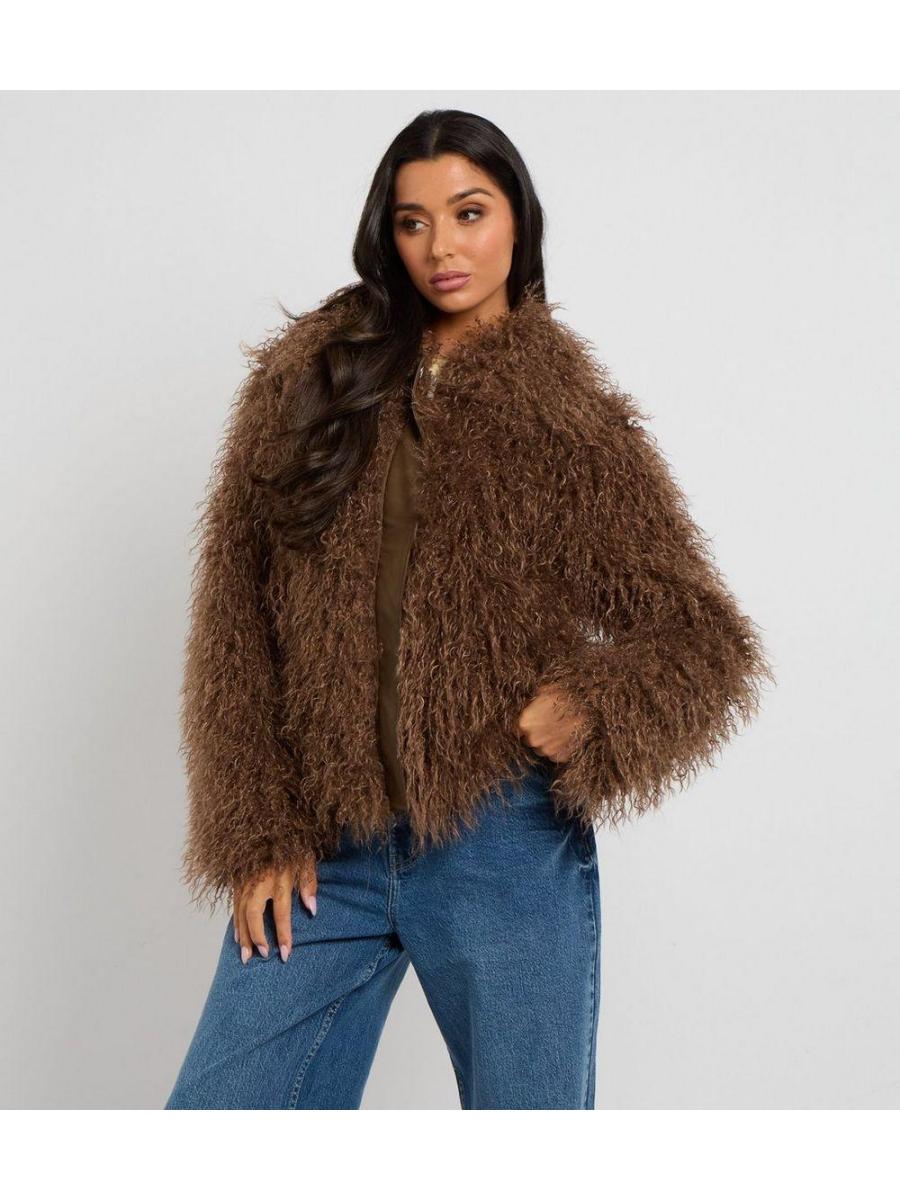 Urban Bliss Brown Textured Faux Fur Jacket