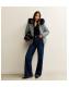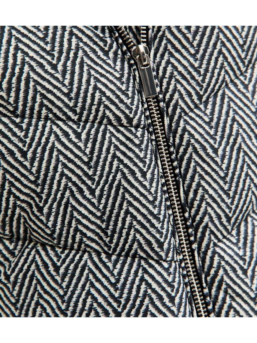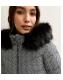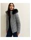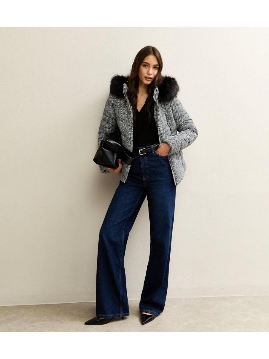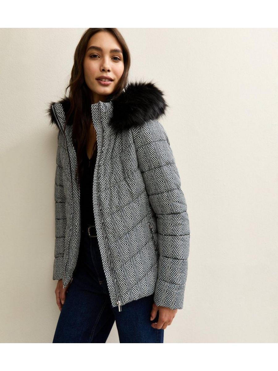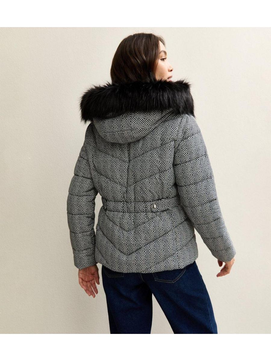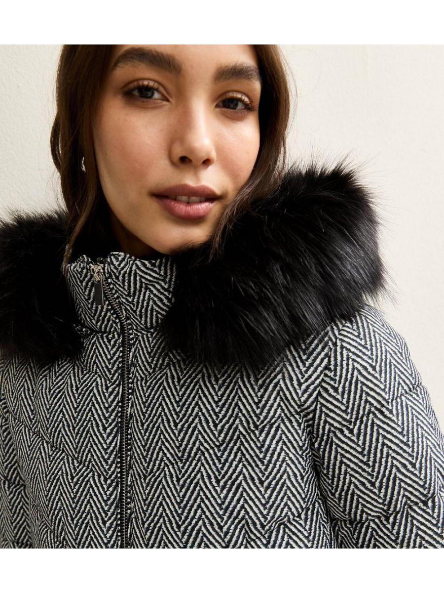 Black Pattern Print Faux Fur Trim Ski Puffer Jacket