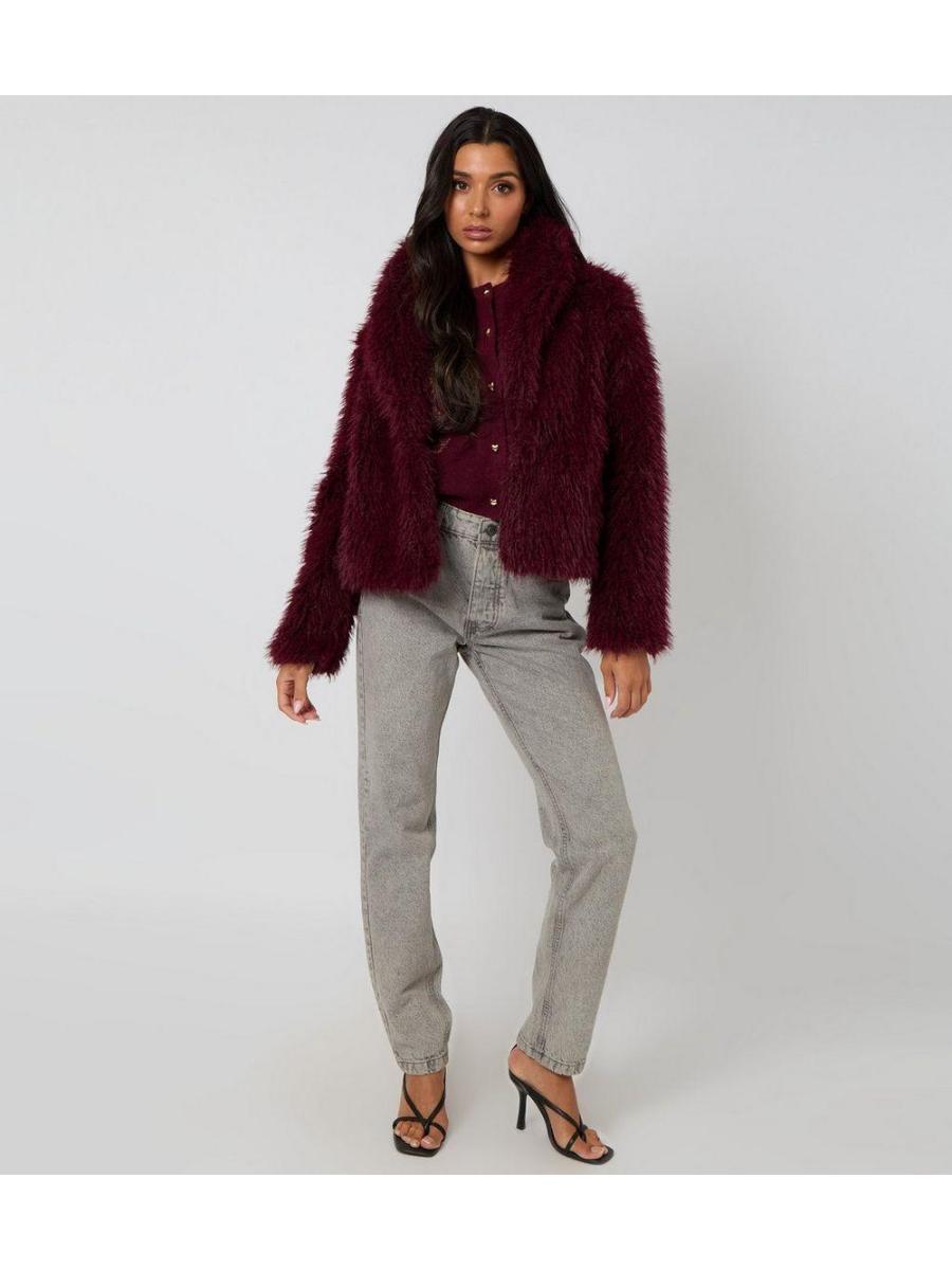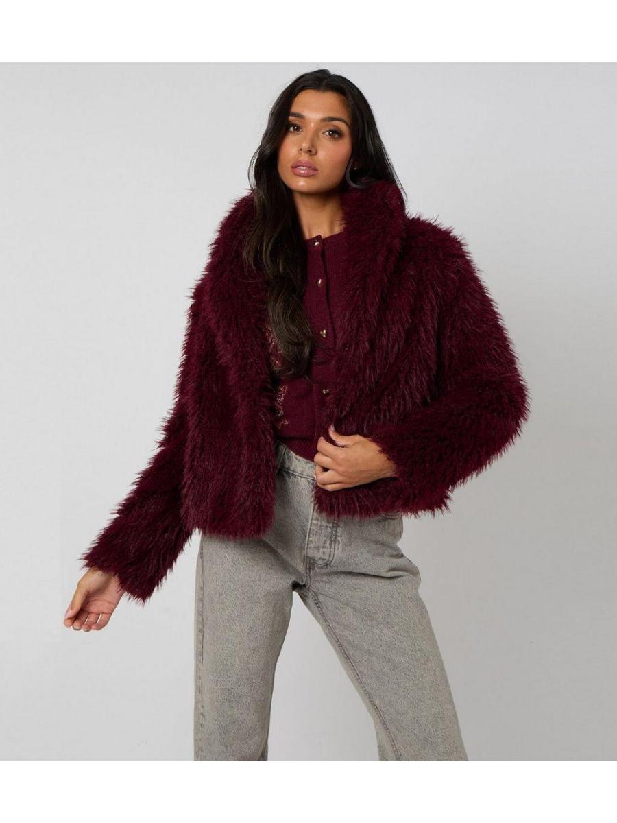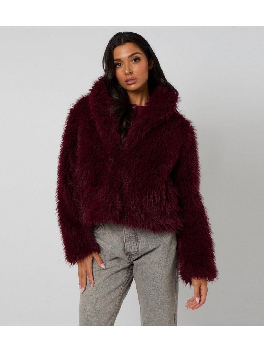 Urban Bliss Dark Burgundy Faux Fur Jacket