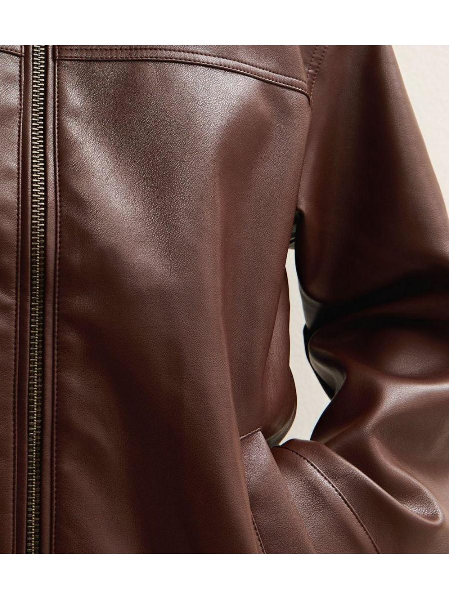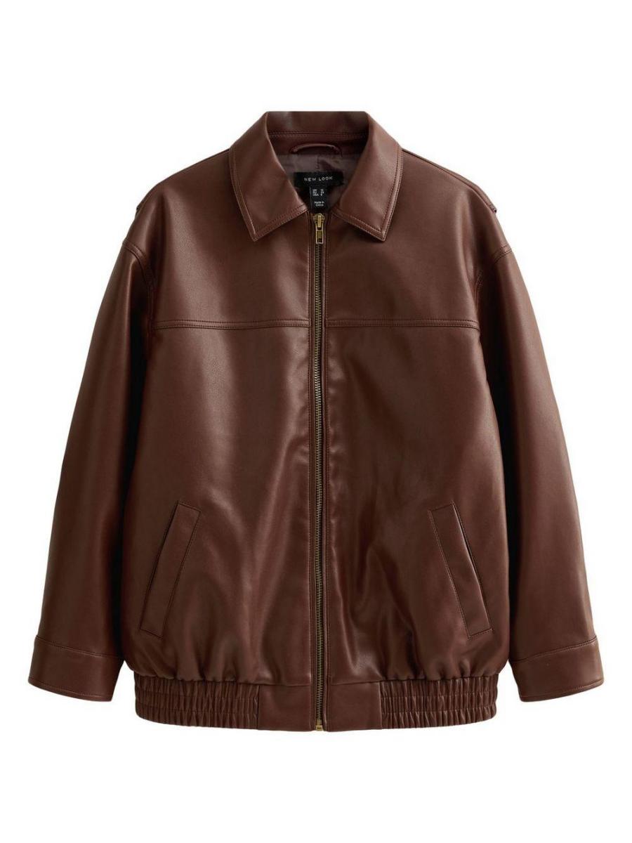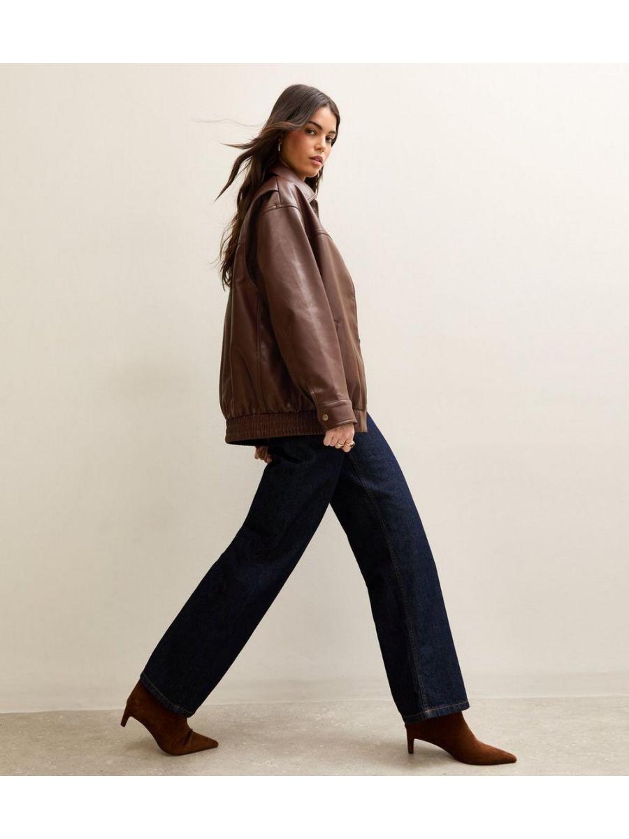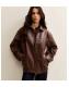 Dark Brown Faux Leather Oversized Bomber Jacket