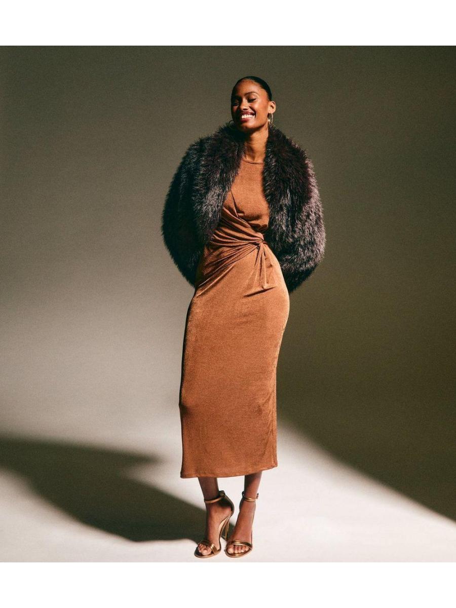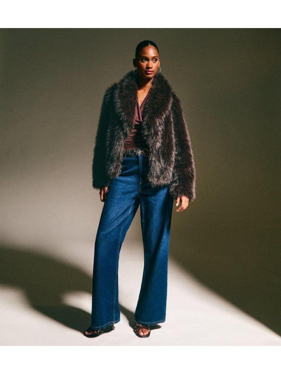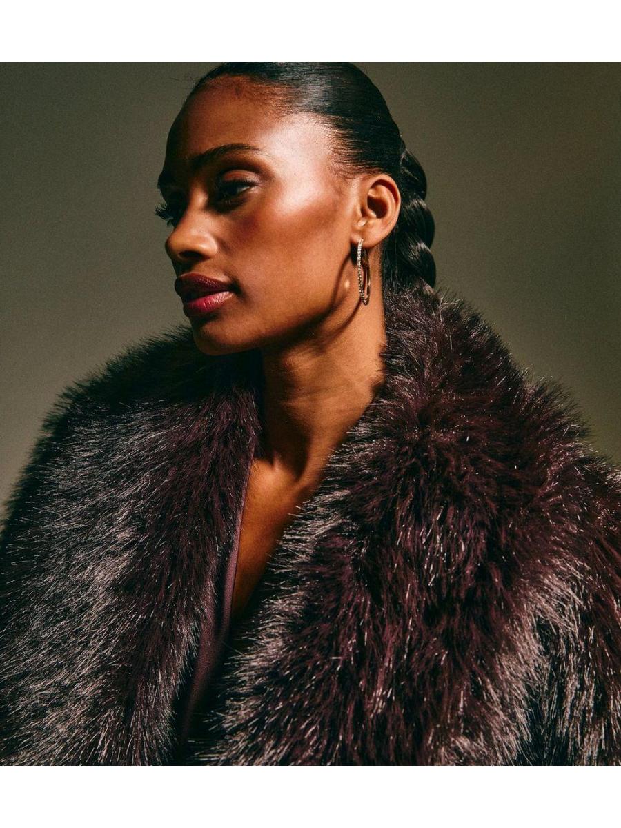 Dark Brown Faux Fur Shawl Collar Coat