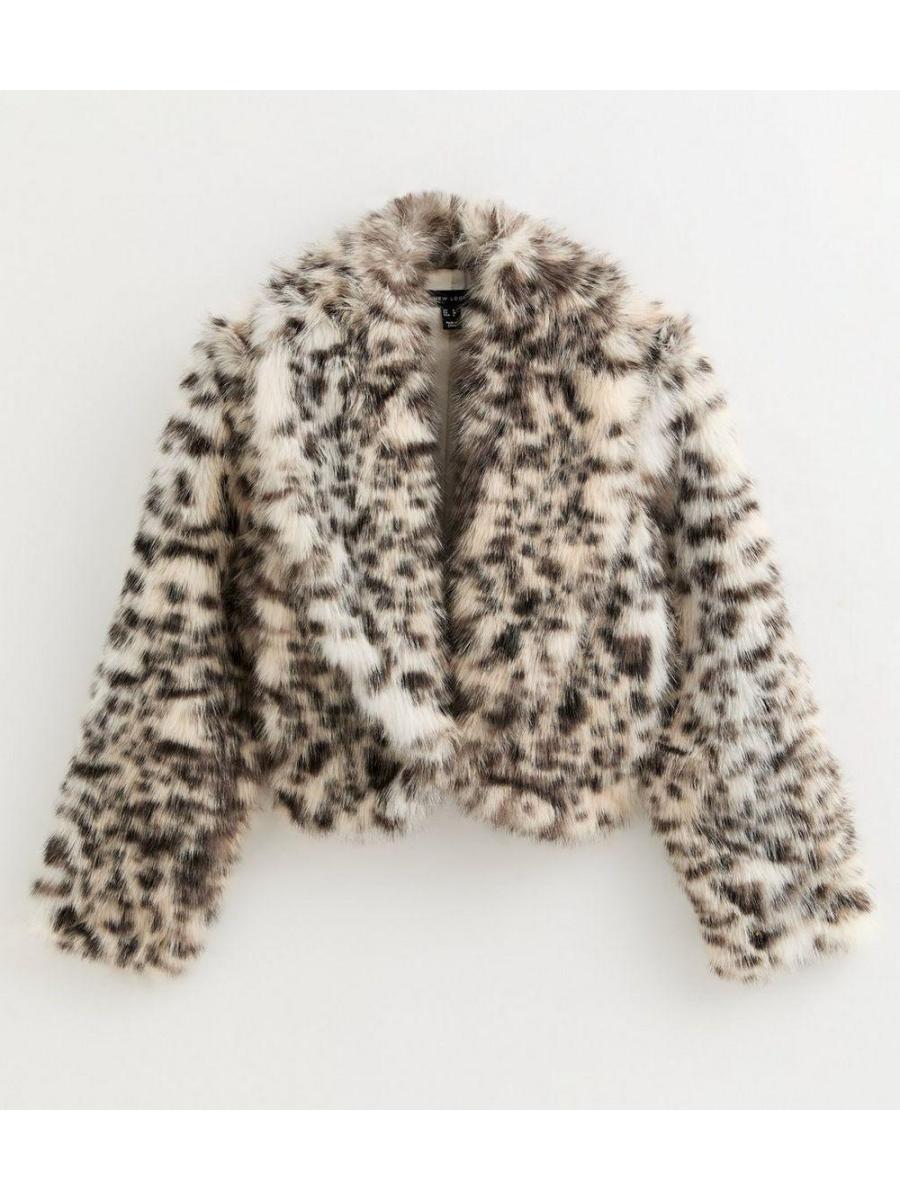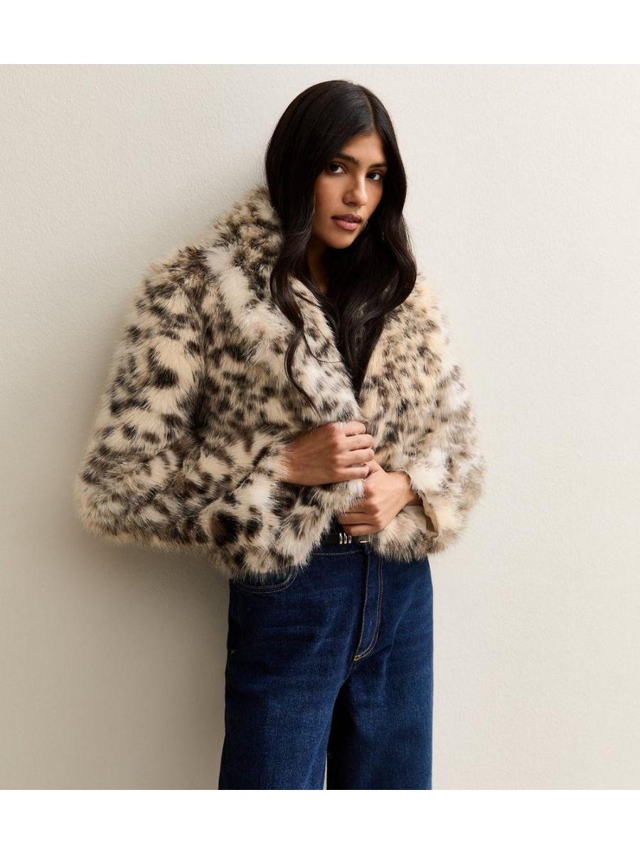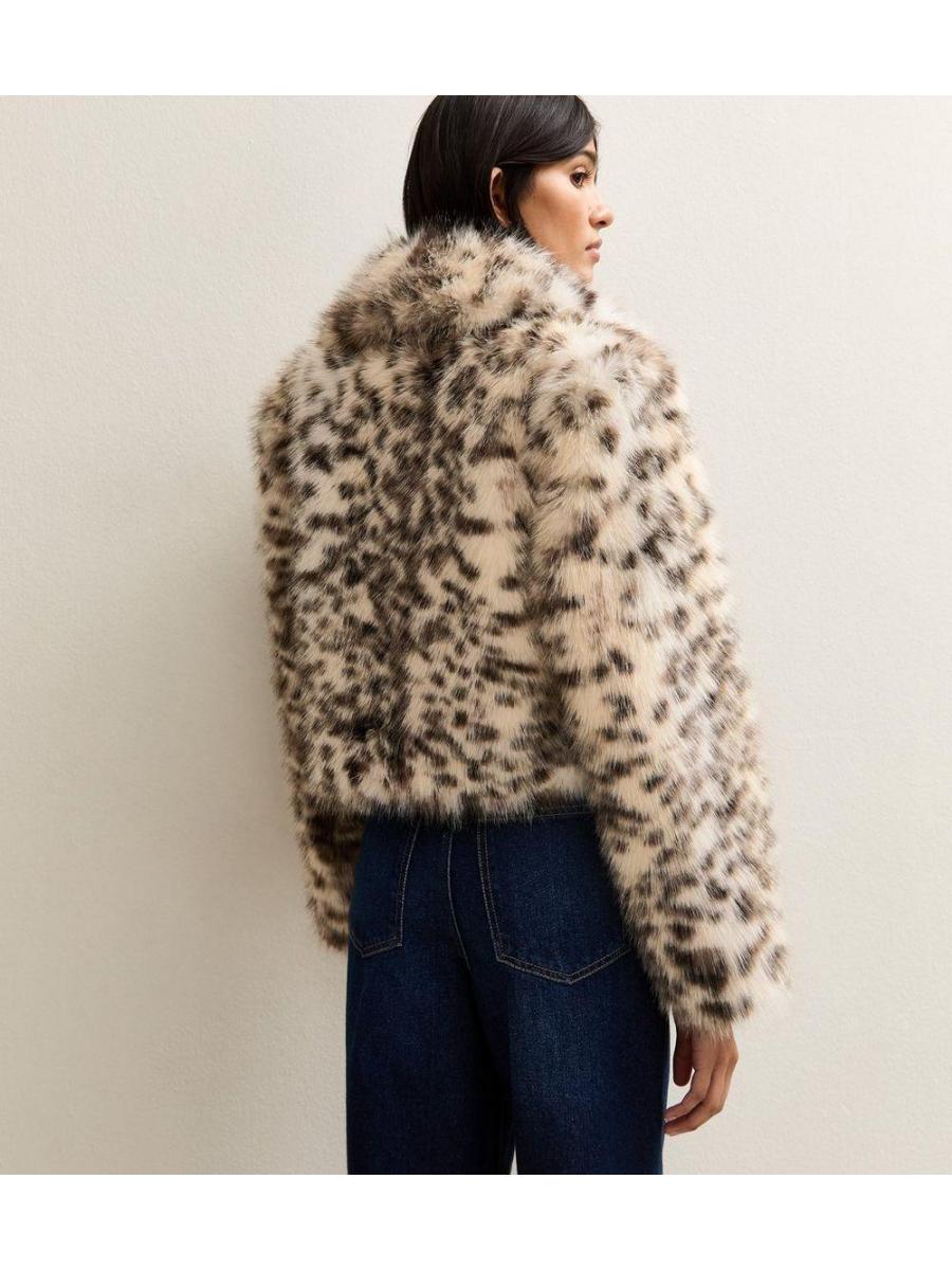 Brown Animal Print Faux Fur Cropped Jacket