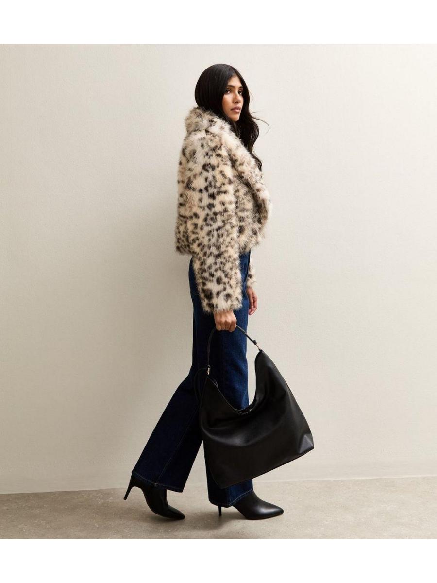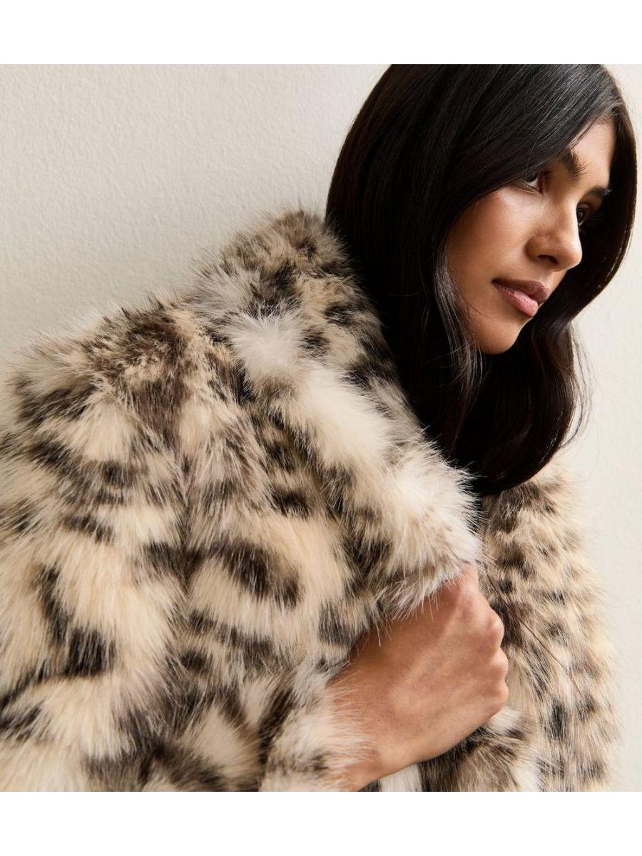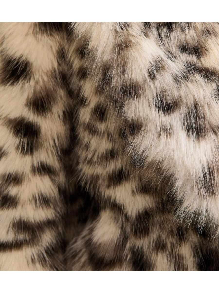 Brown Animal Print Faux Fur Cropped Jacket