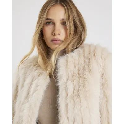 Cream Short Pelted Faux Fur Jacket