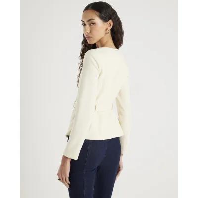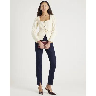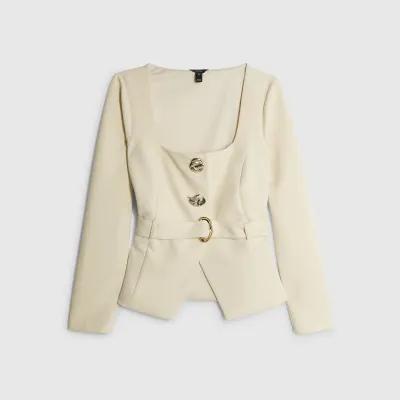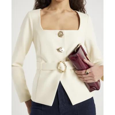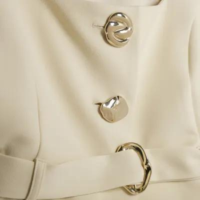Cream Long Sleeve Belted Mixed Button Blazer