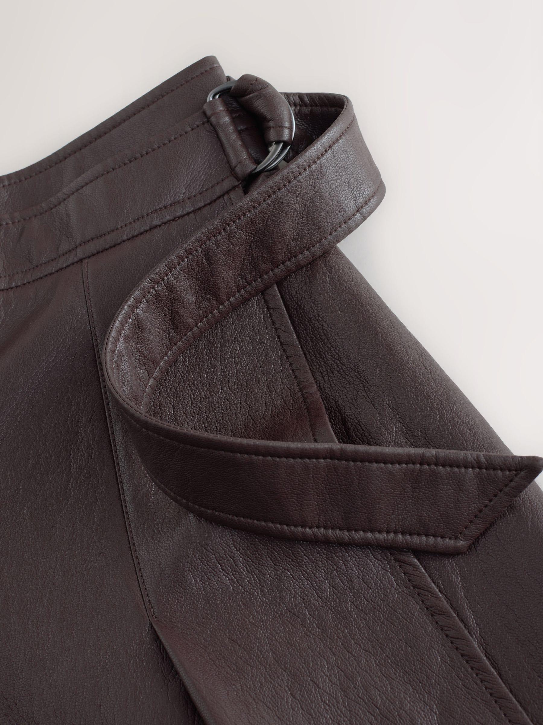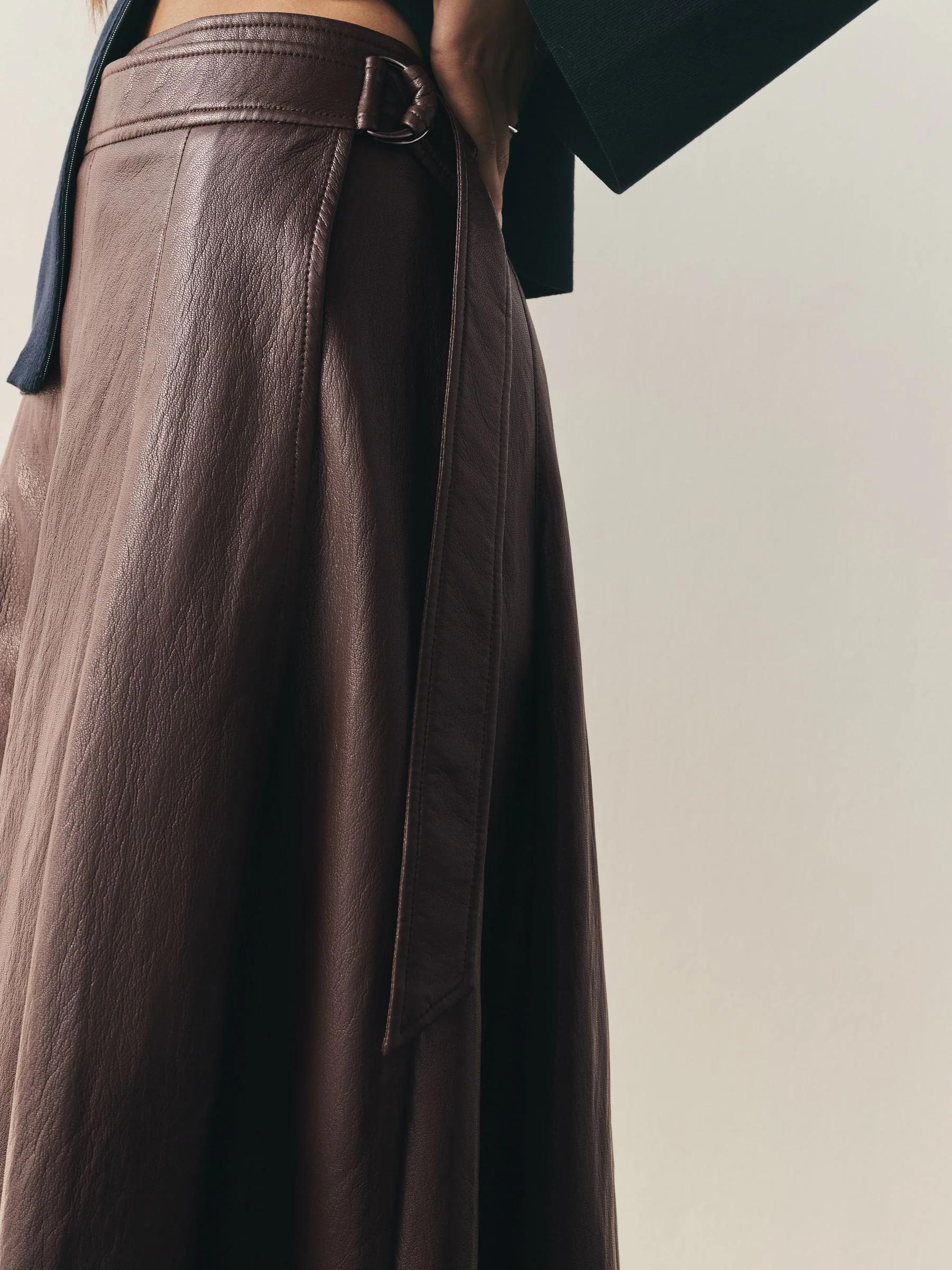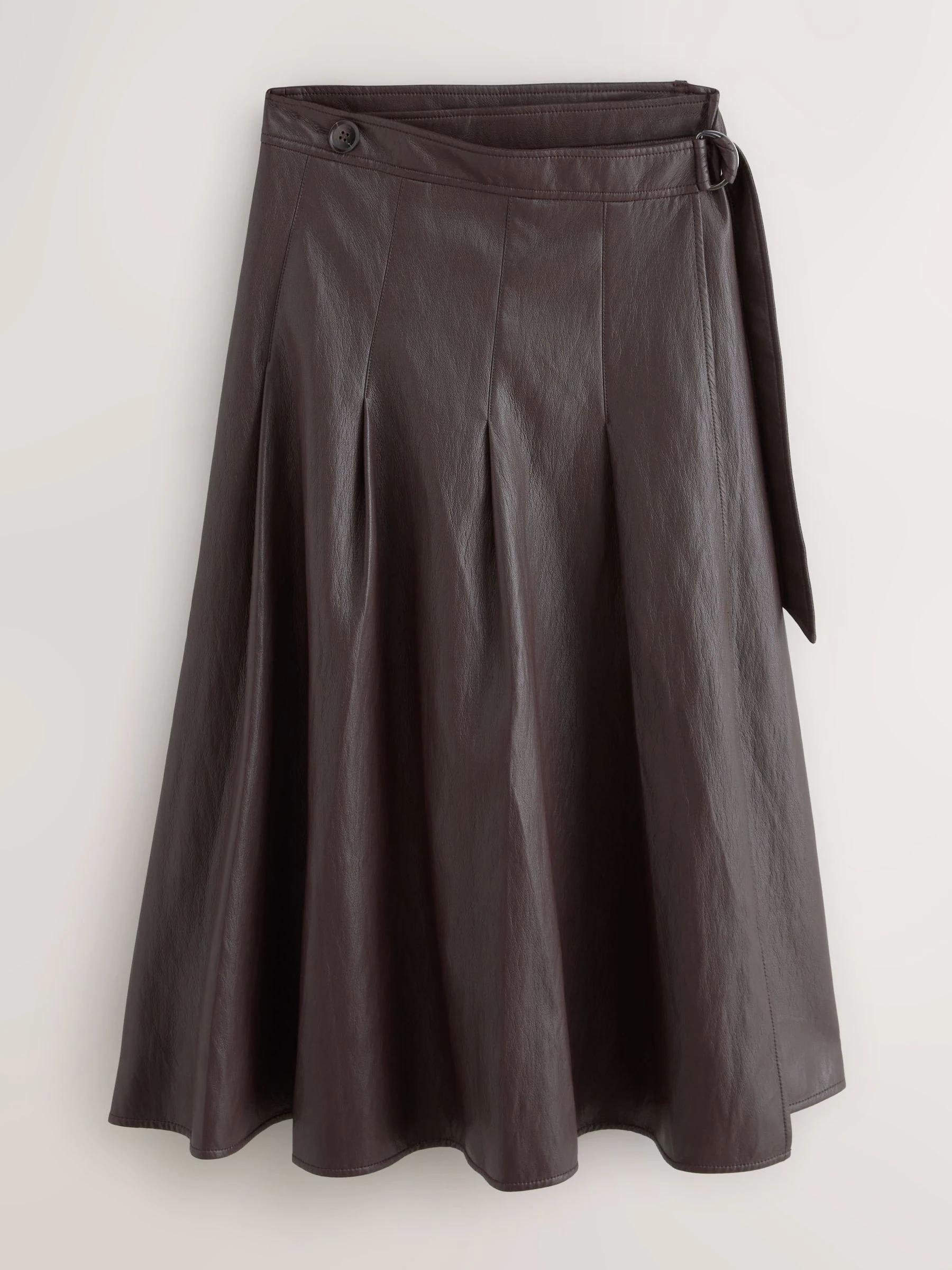 Nothing Ordinary Chocolate Brown Faux Leather Wrap Midi Kilt Skirt