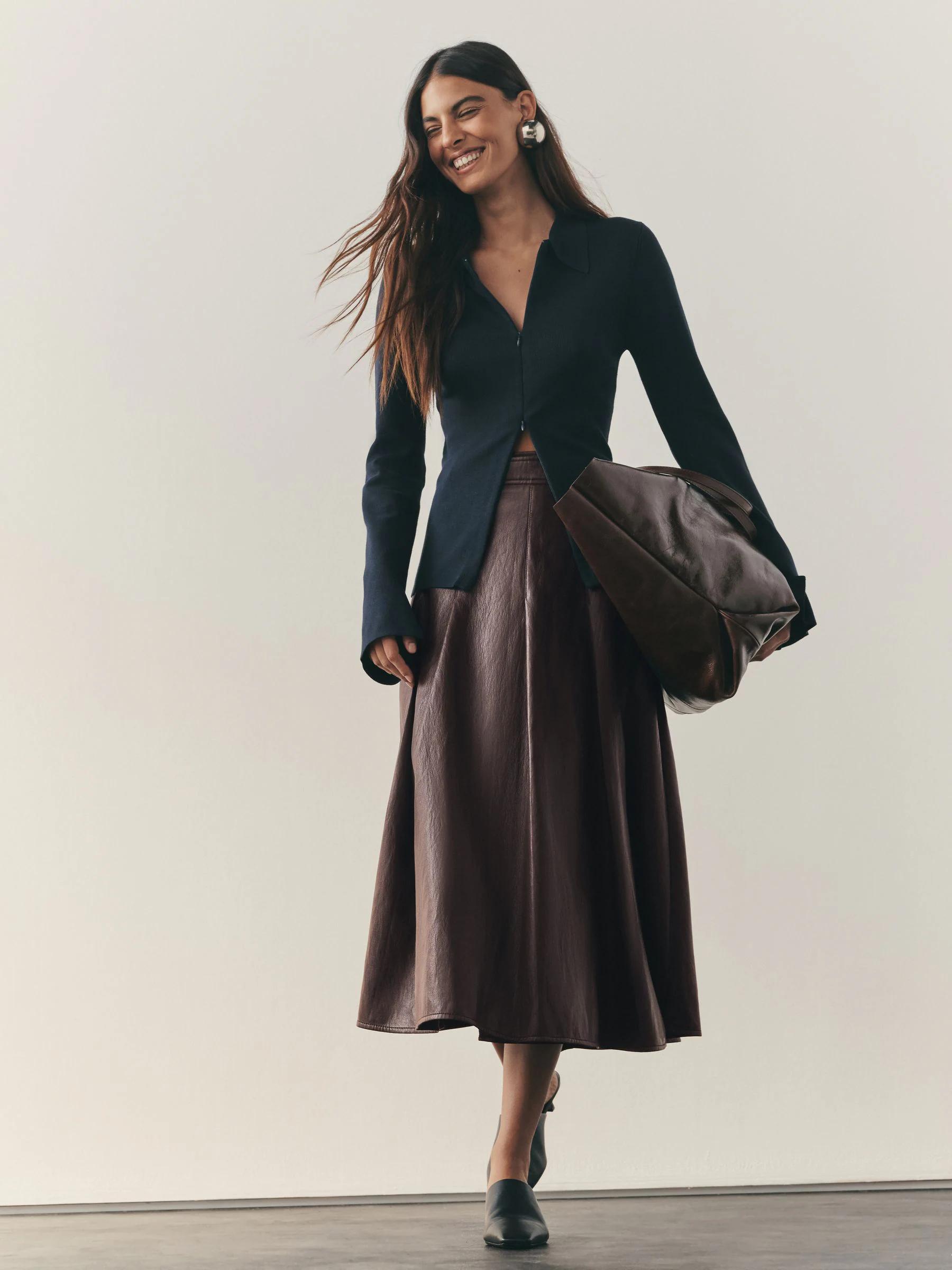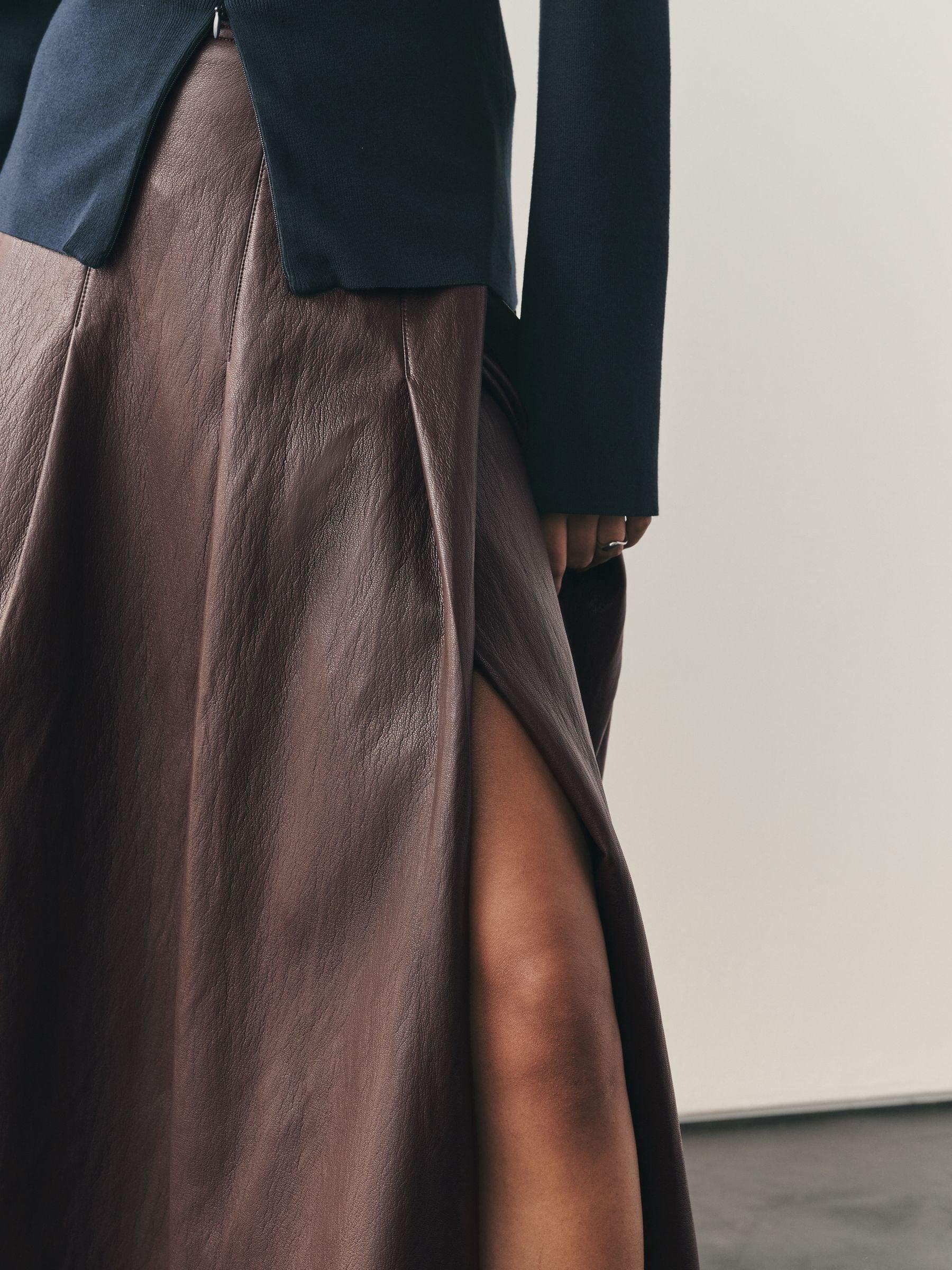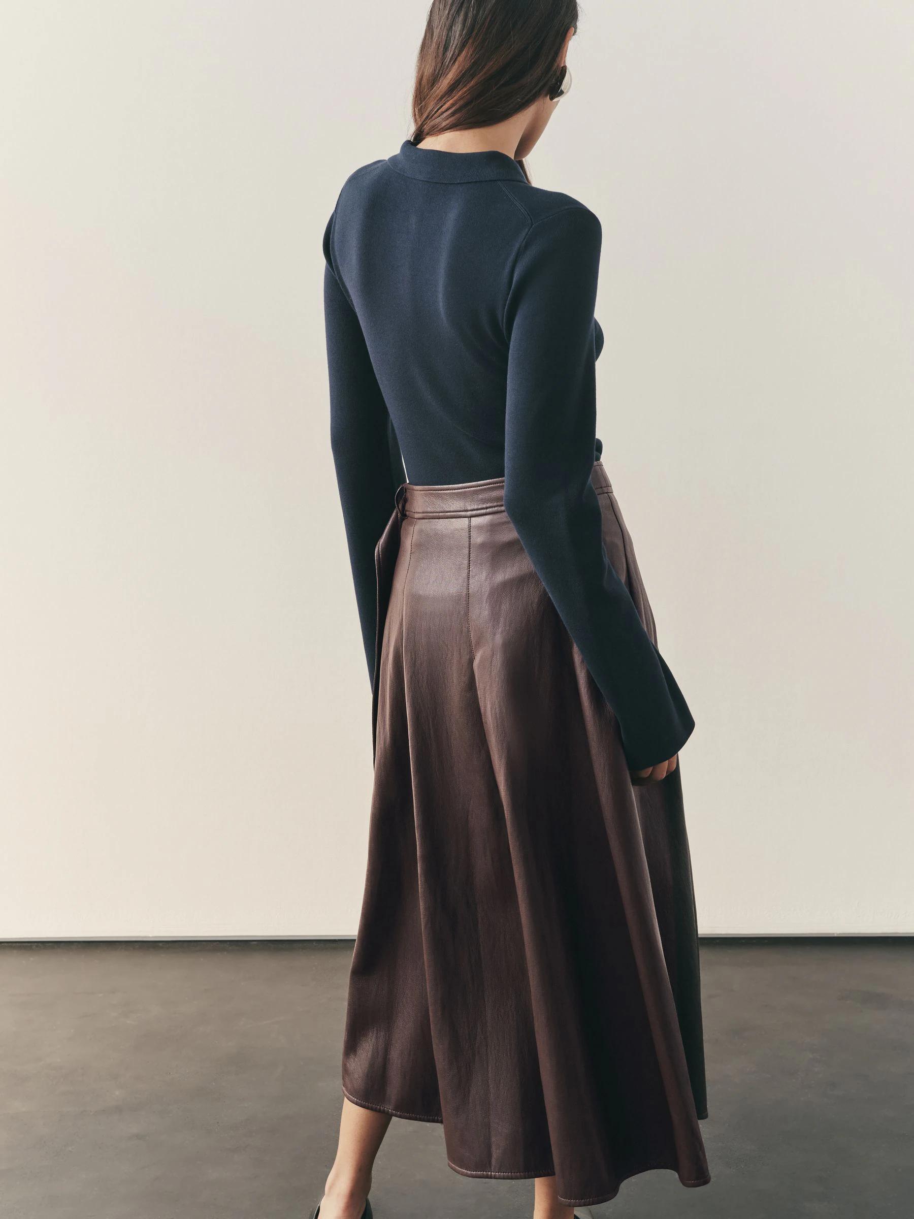 Nothing Ordinary Chocolate Brown Faux Leather Wrap Midi Kilt Skirt