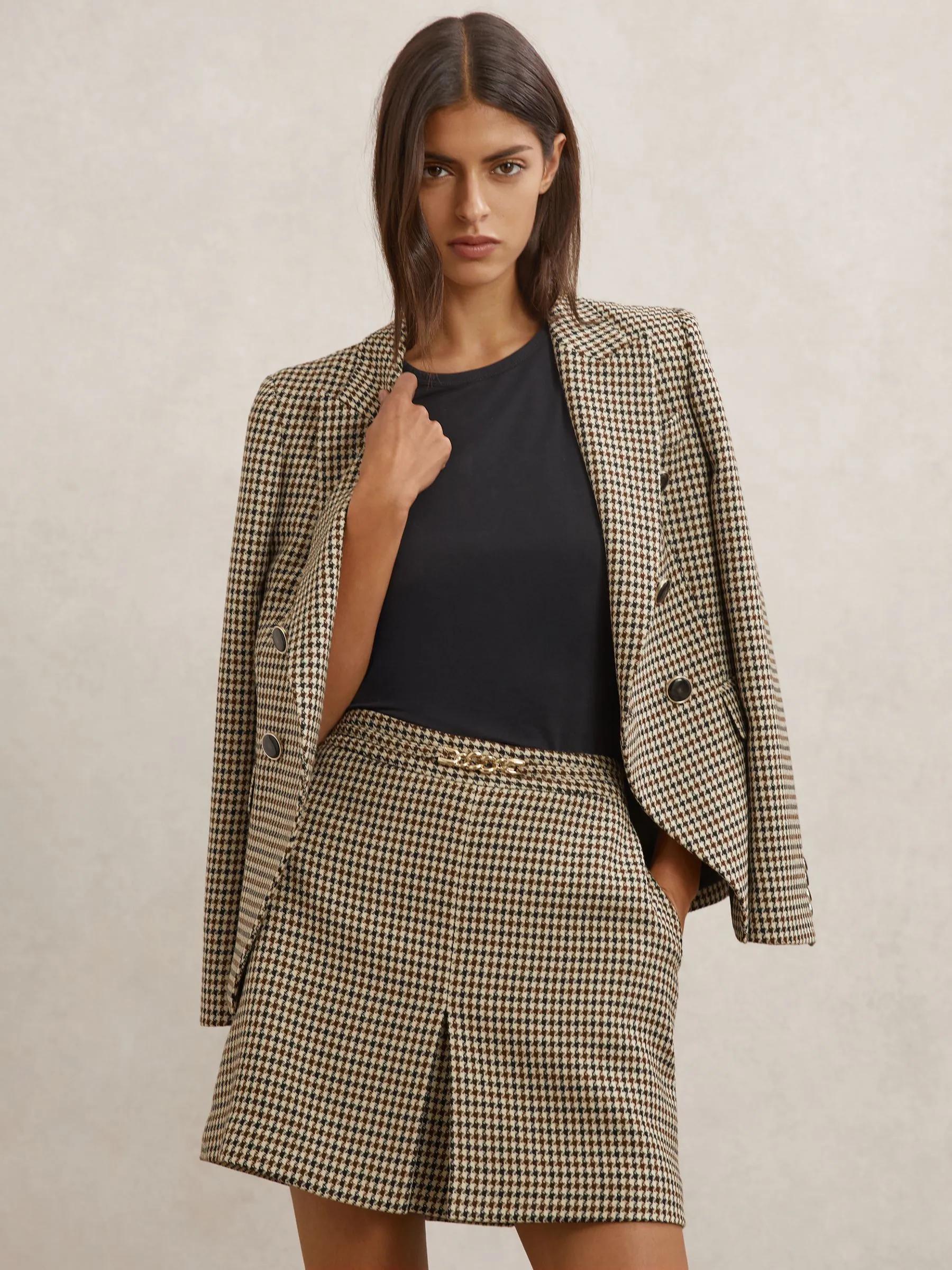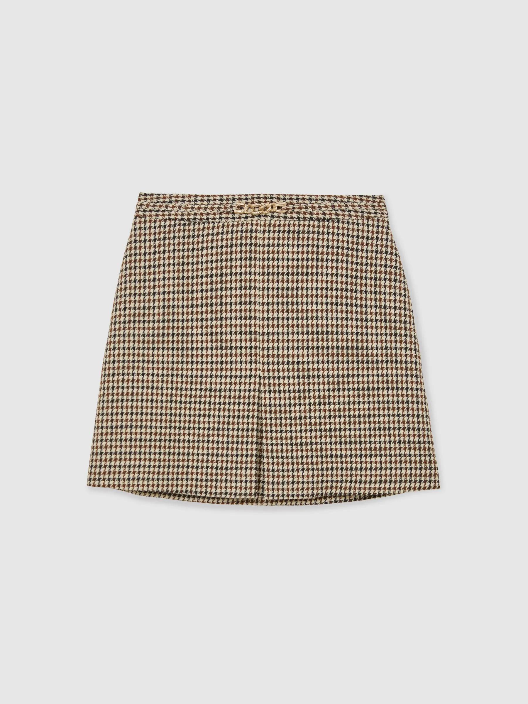 Reiss Neutral Check Beatrix Wool-Blend Check Mini Skirt
