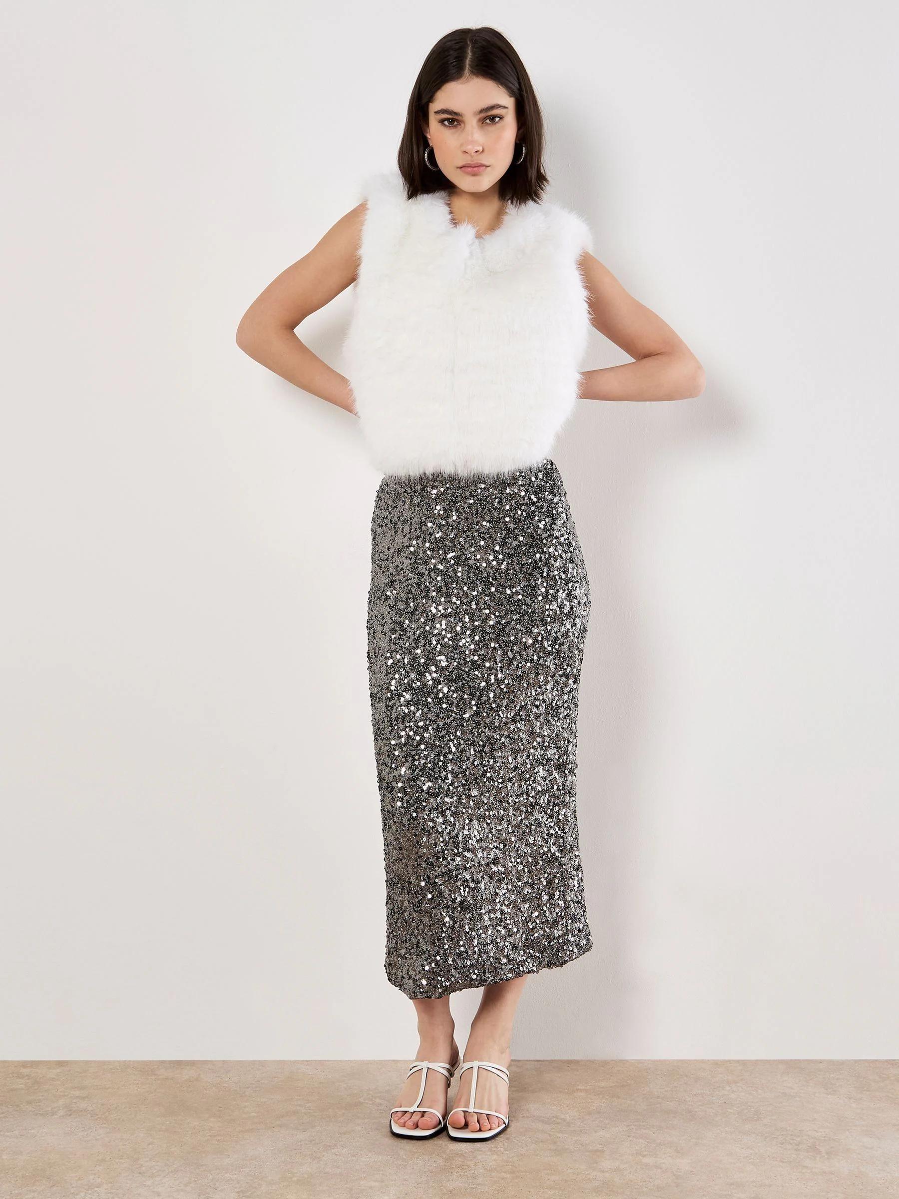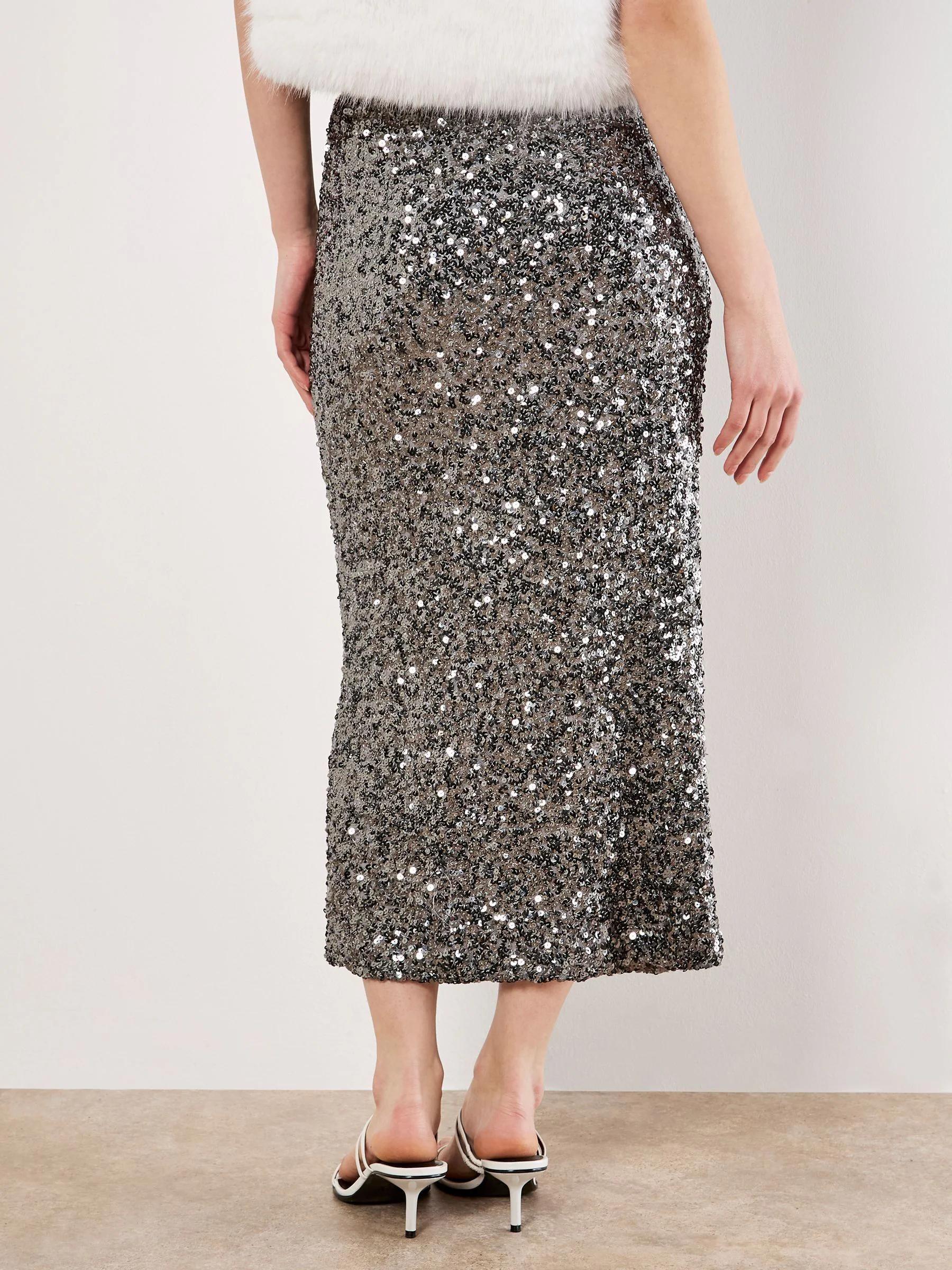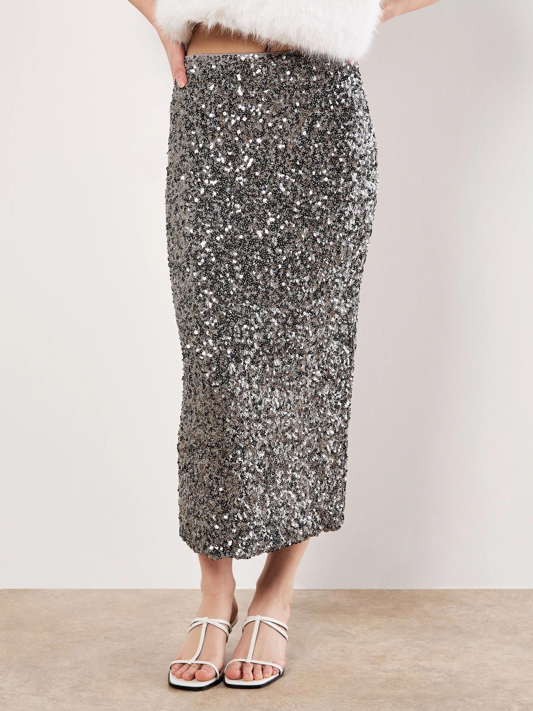 Apricot Grey Cluster Sequin Midmaxi Skirt