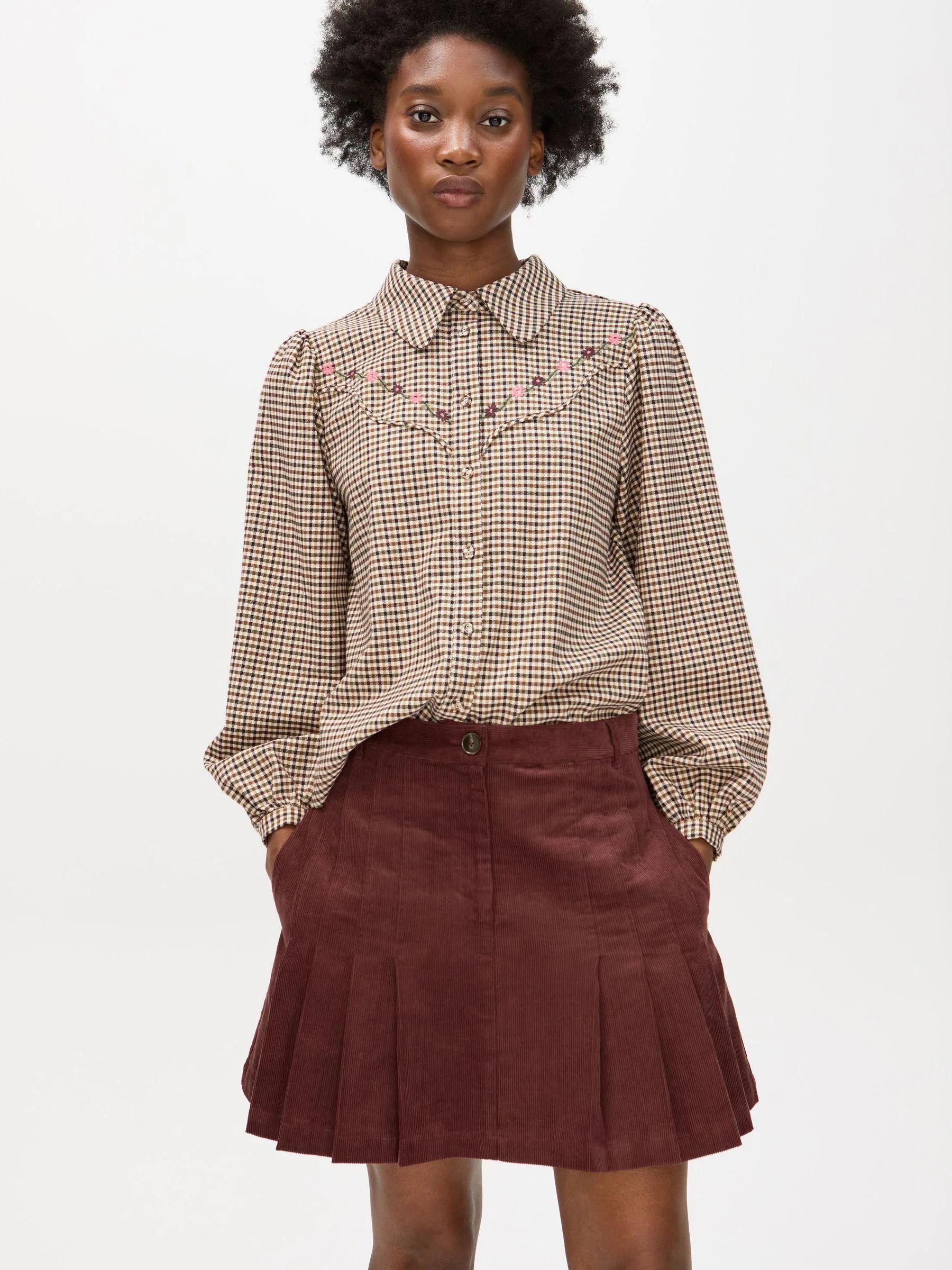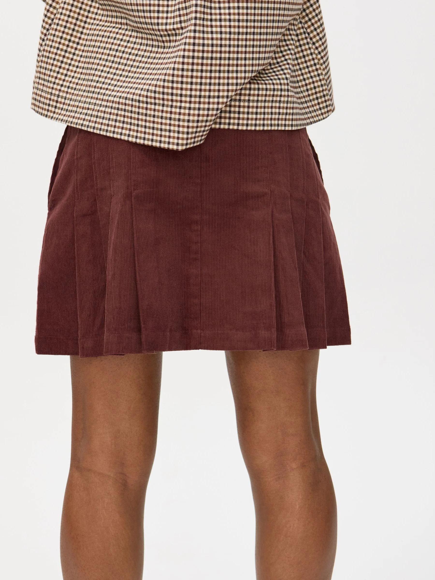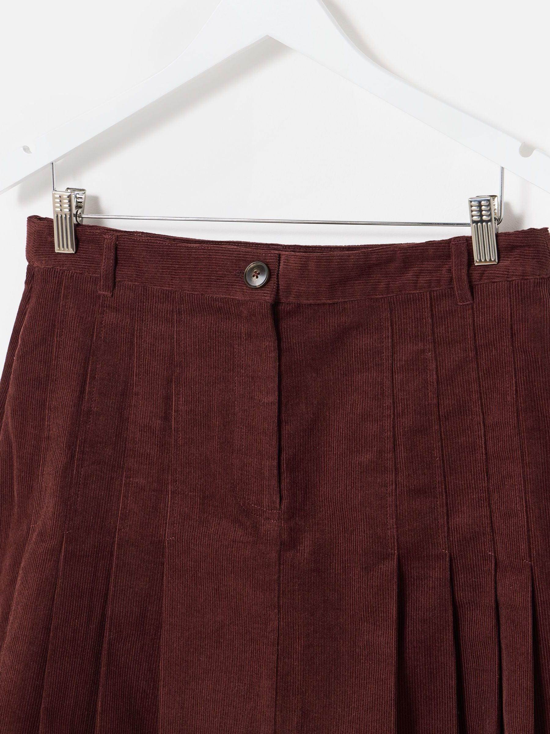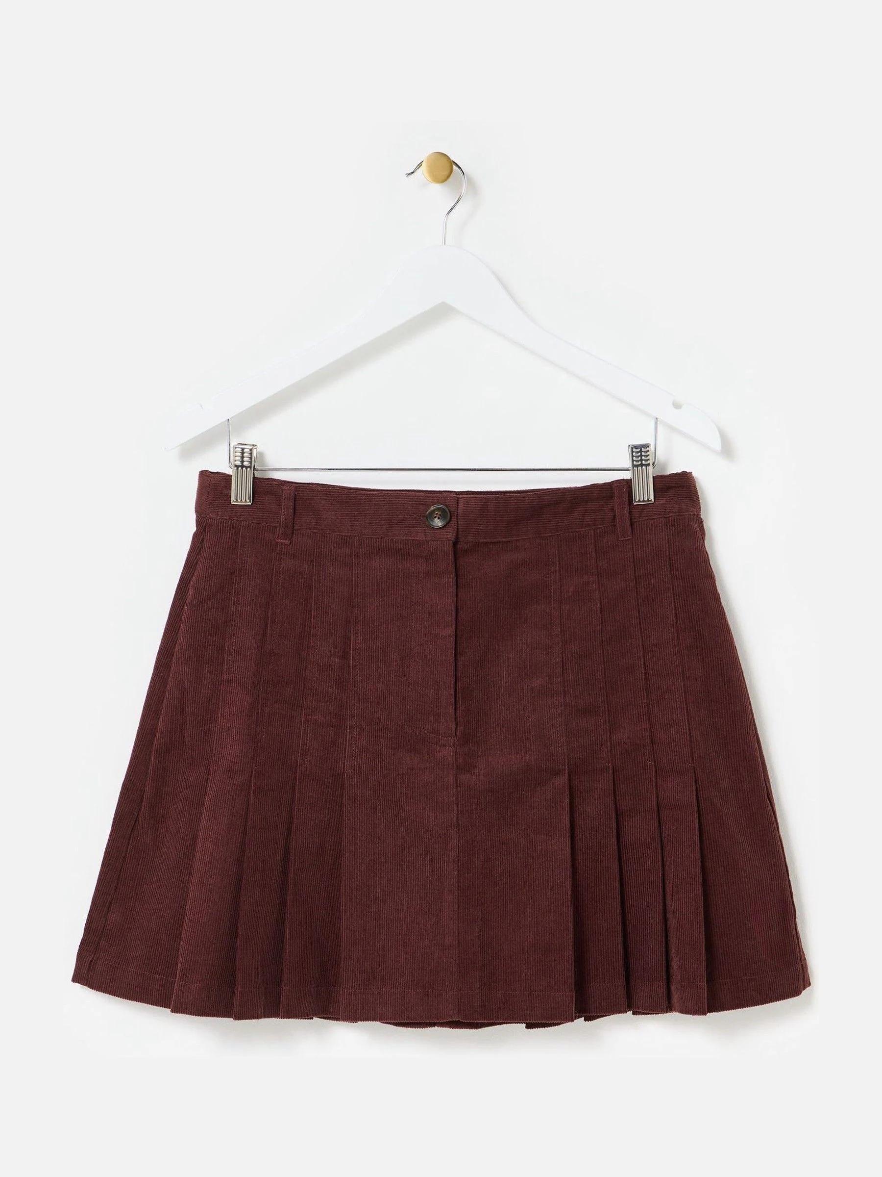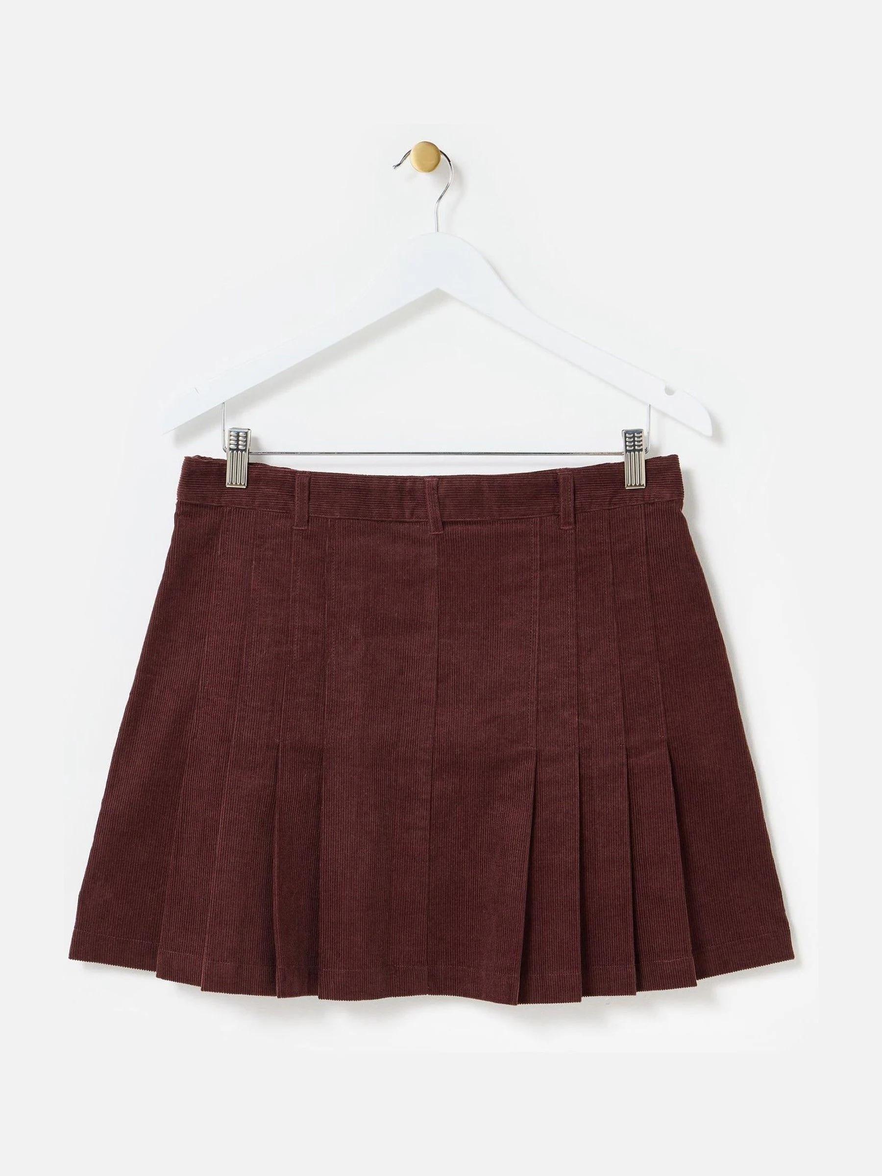 Oliver Bonas Brown Corduroy Pleated Mini Skirt