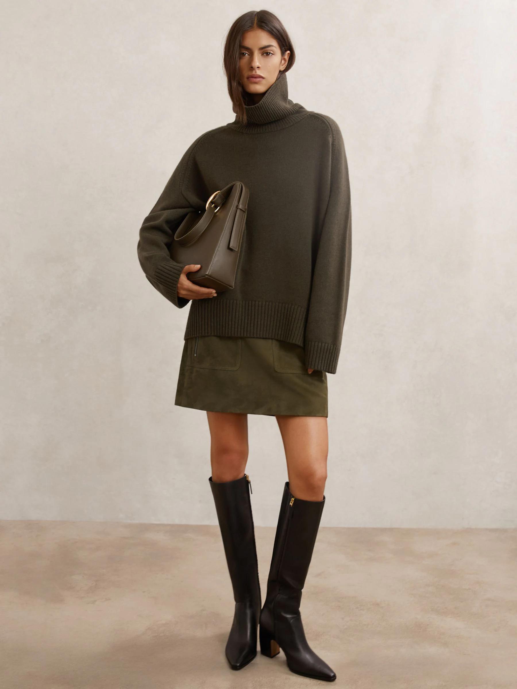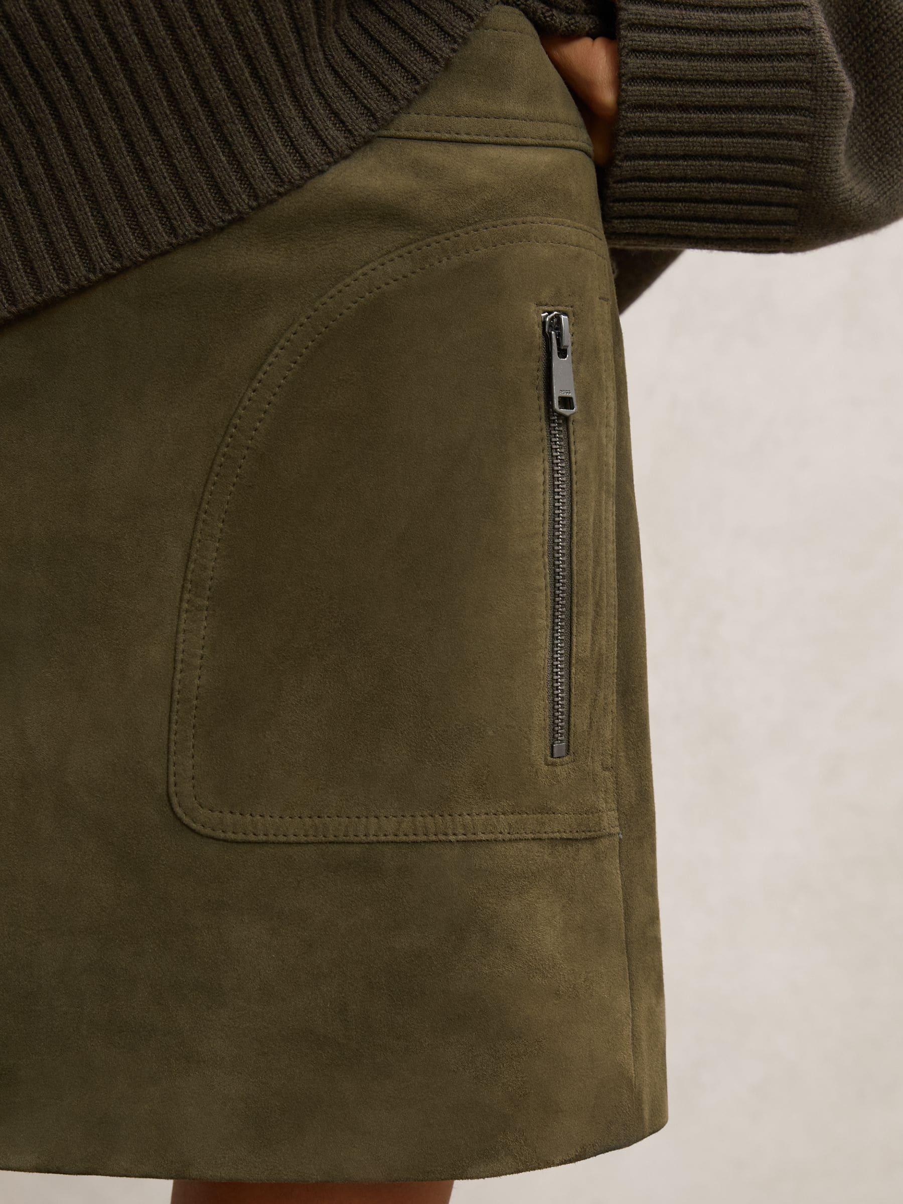 Reiss Khaki Green Tate Suede Zip-Pocket Mini Skirt