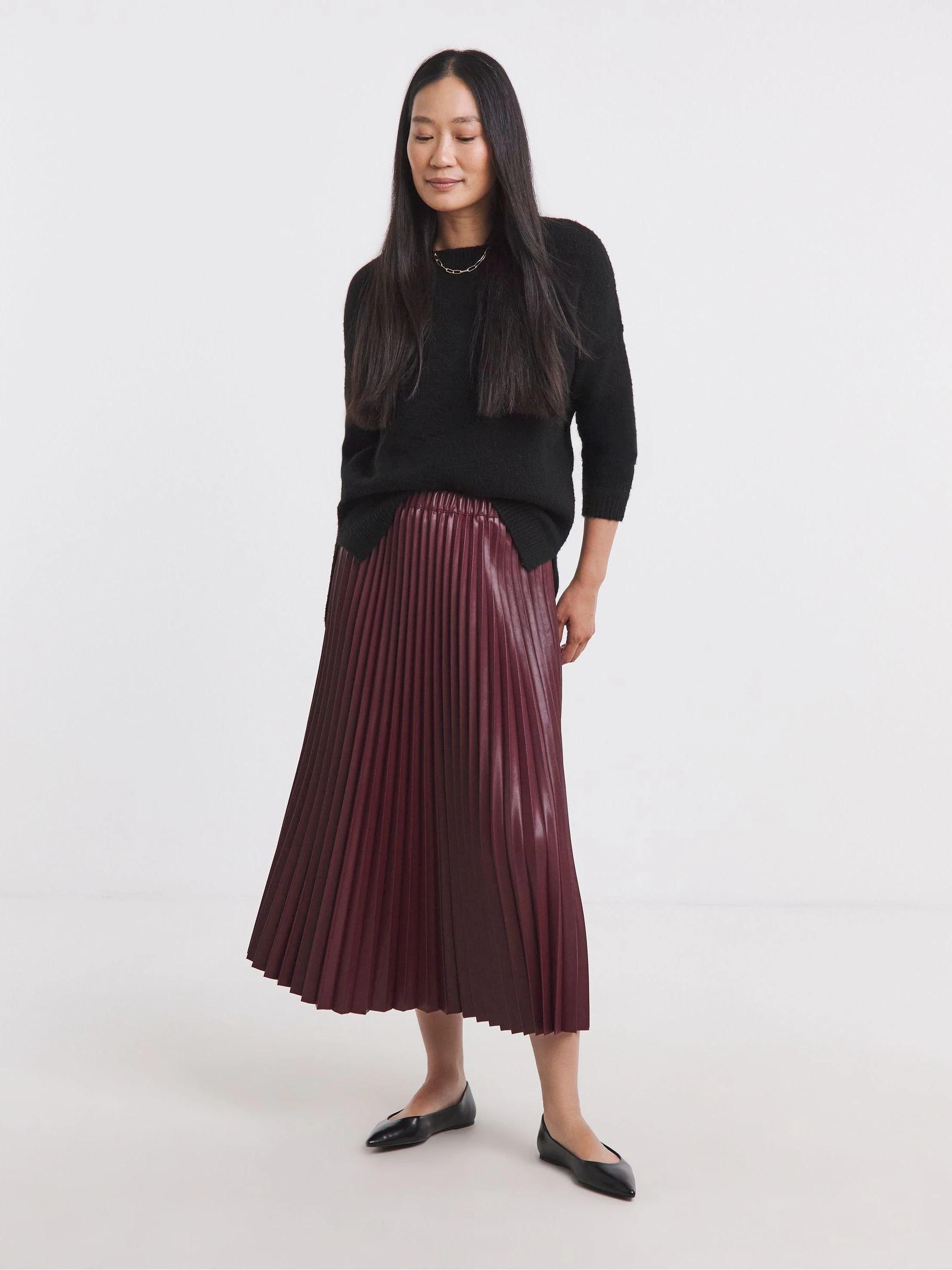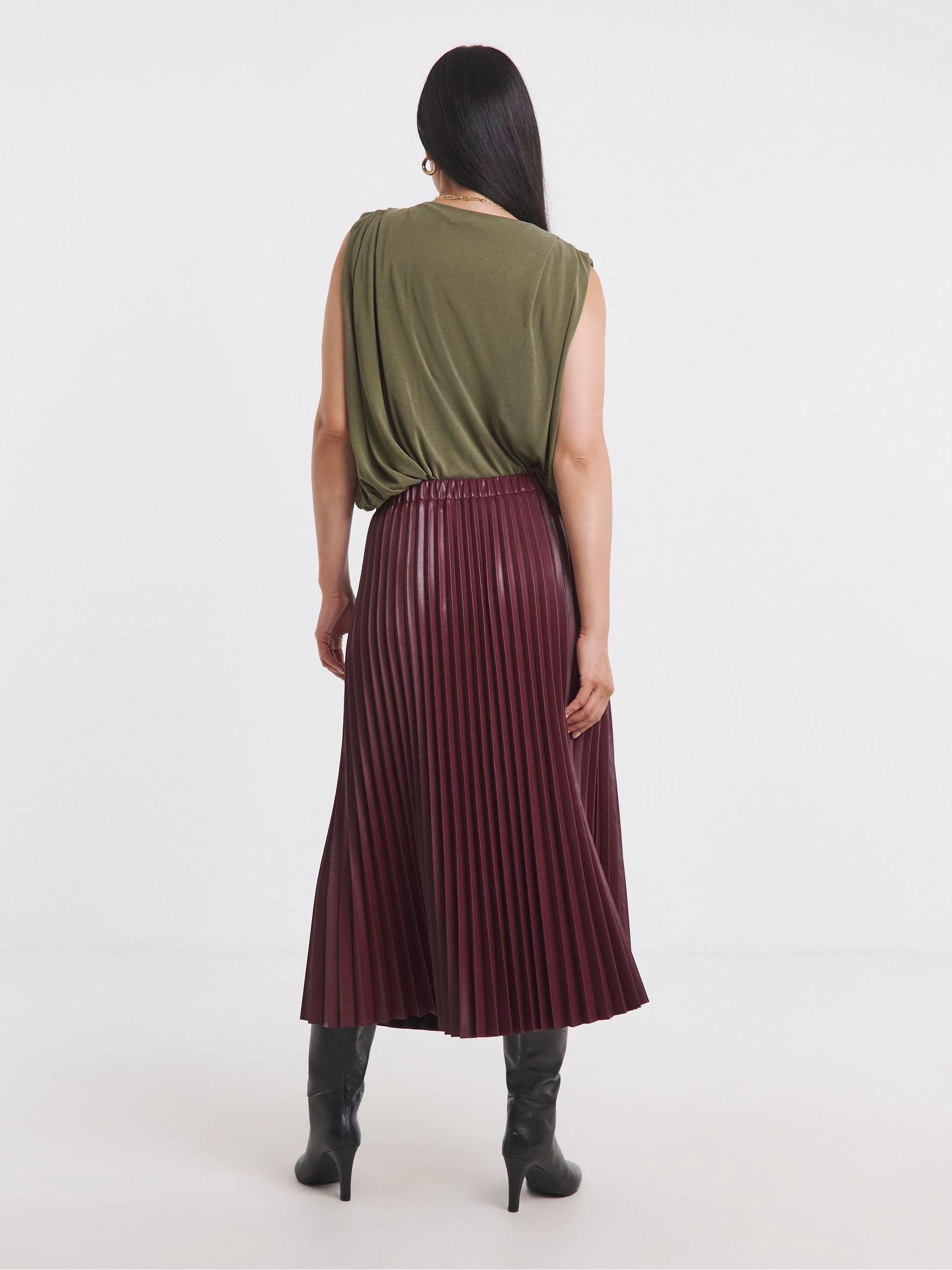 JD Williams Red PU Pleated Midi Skirt