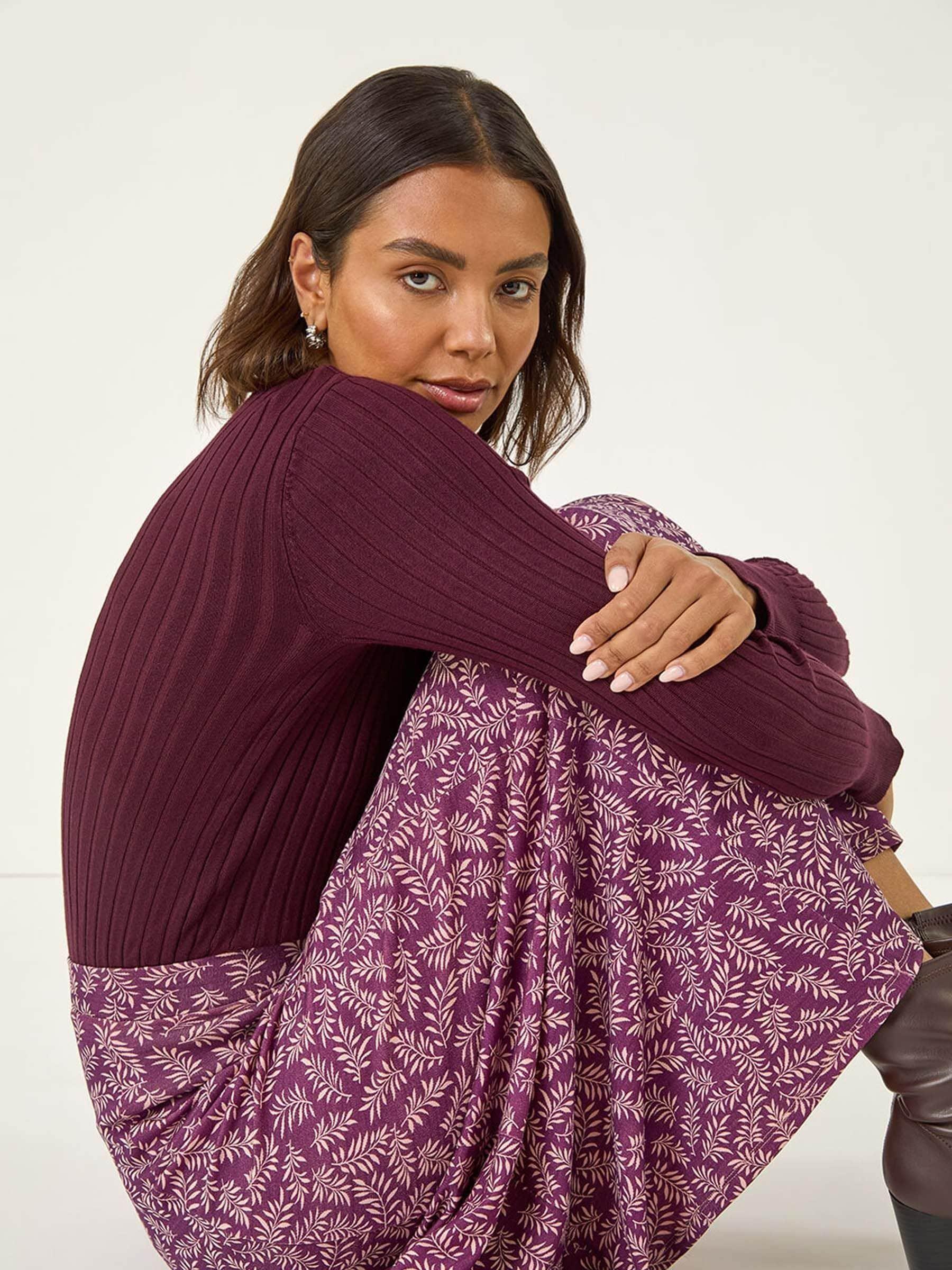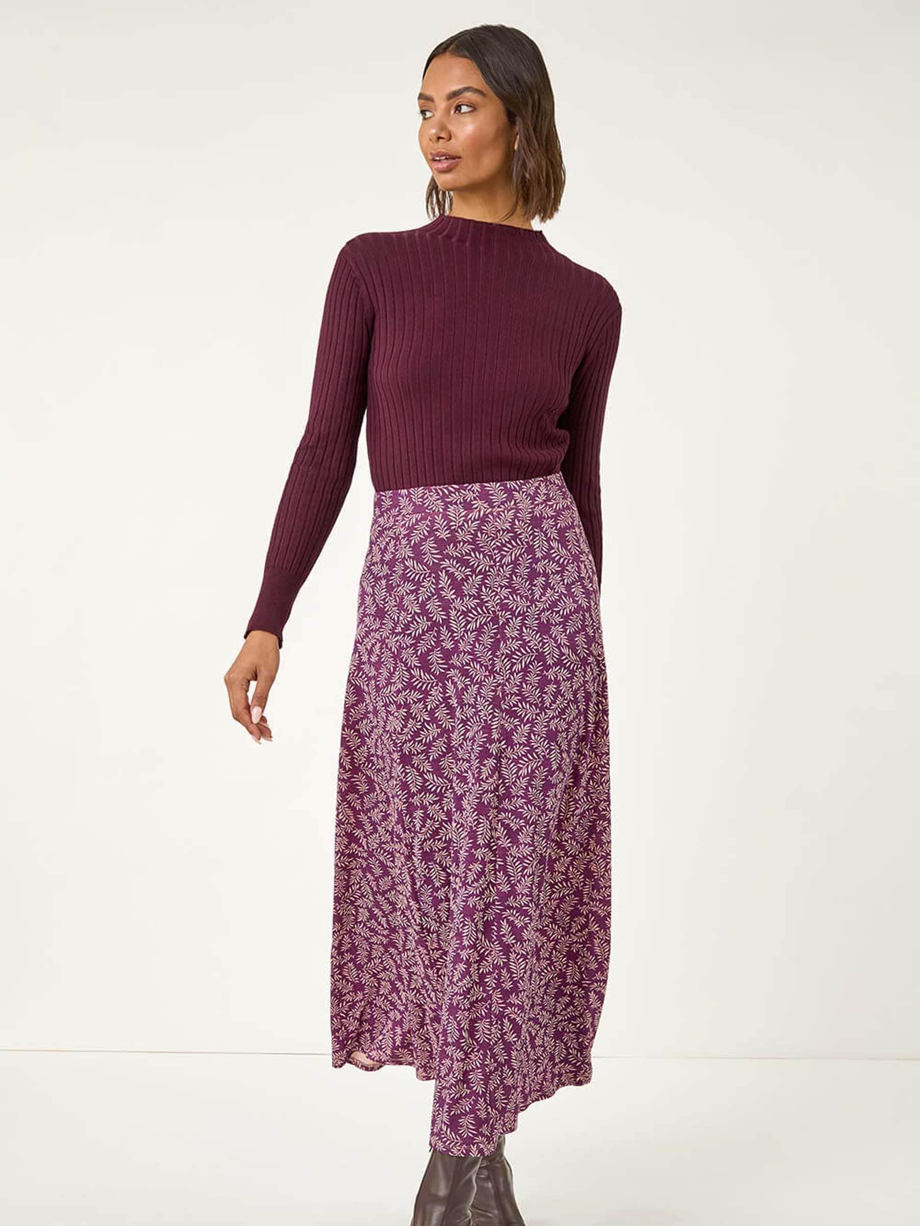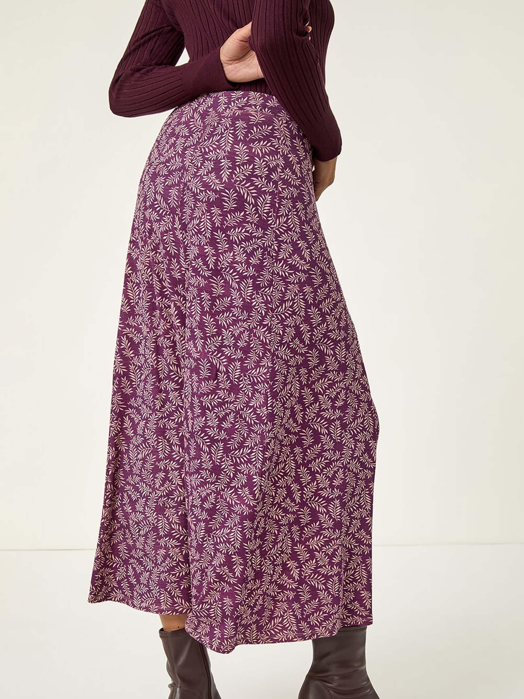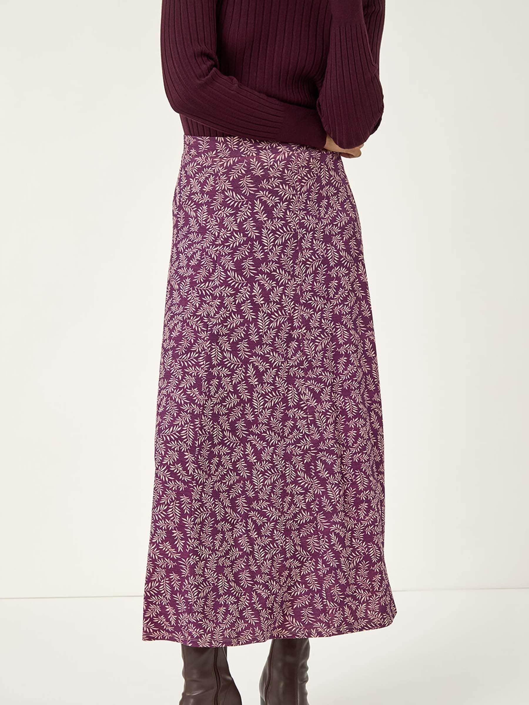 Roman Red Sprig Leaf Stretch Midi Skirt