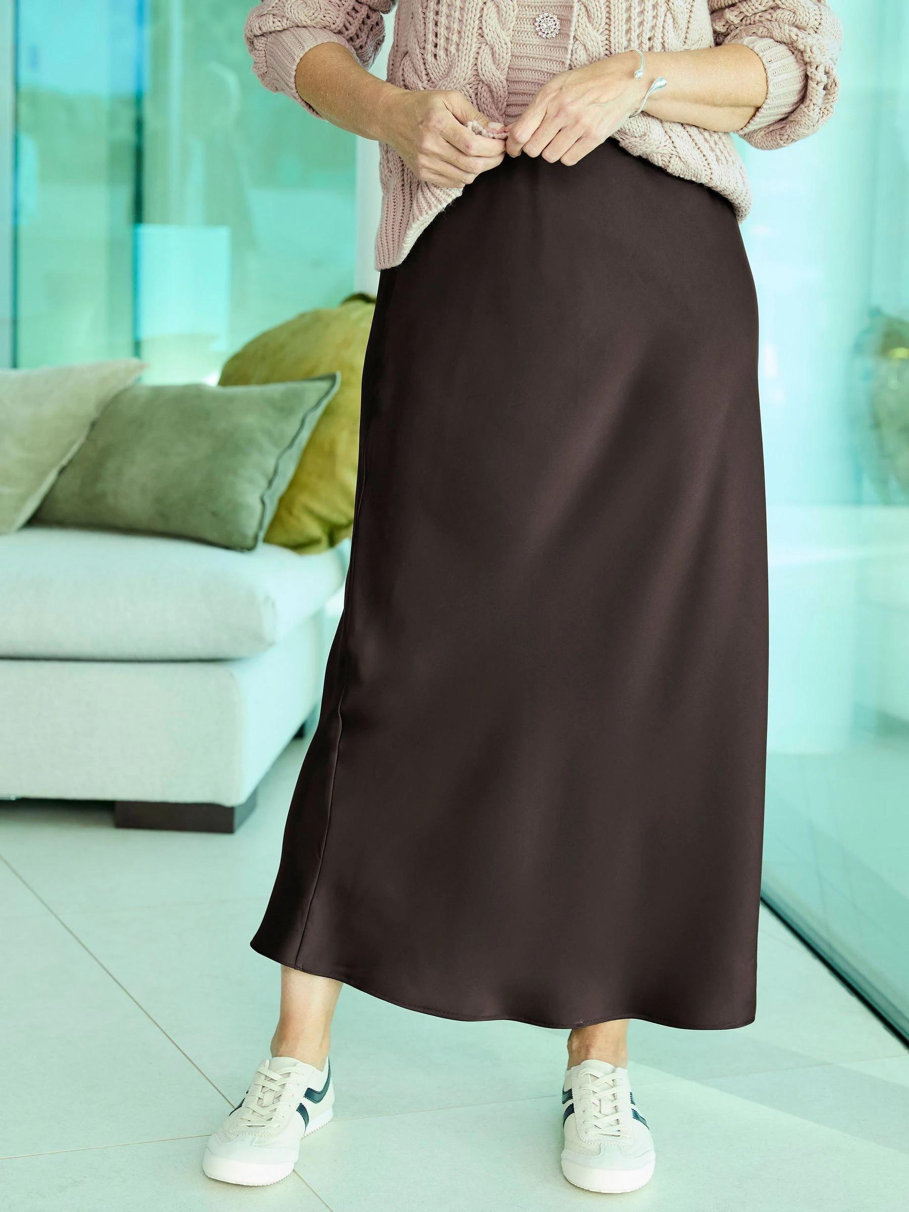 Cotton Traders Dark Brown Satin Maxi Skirt