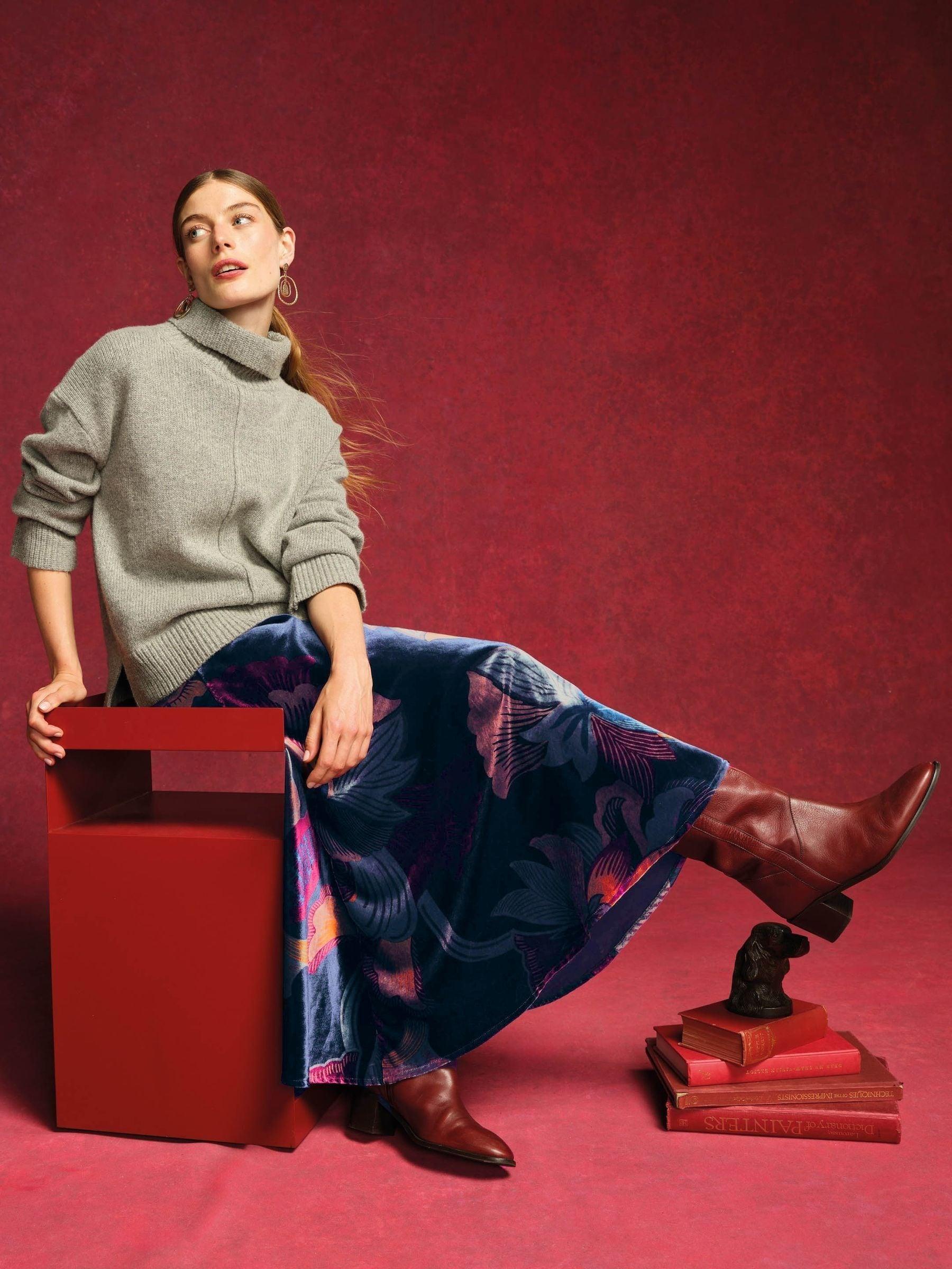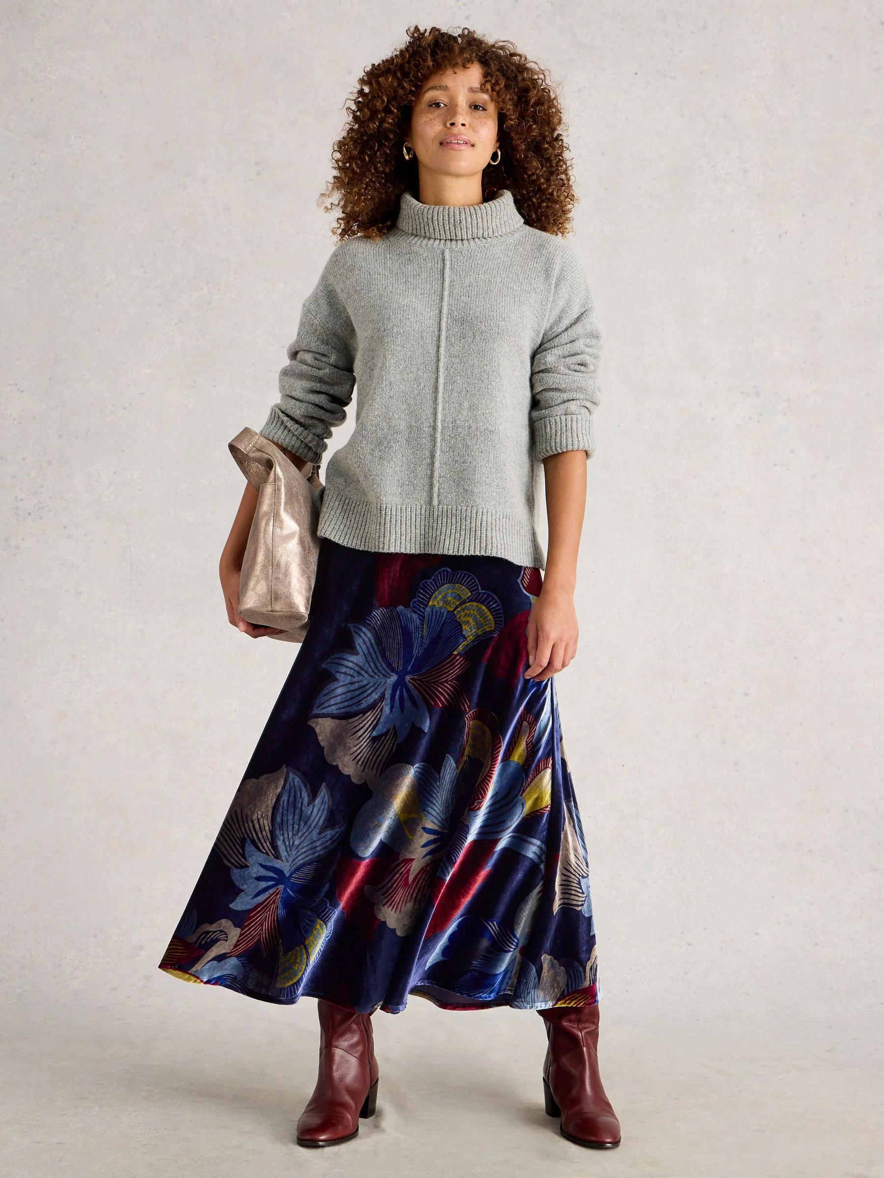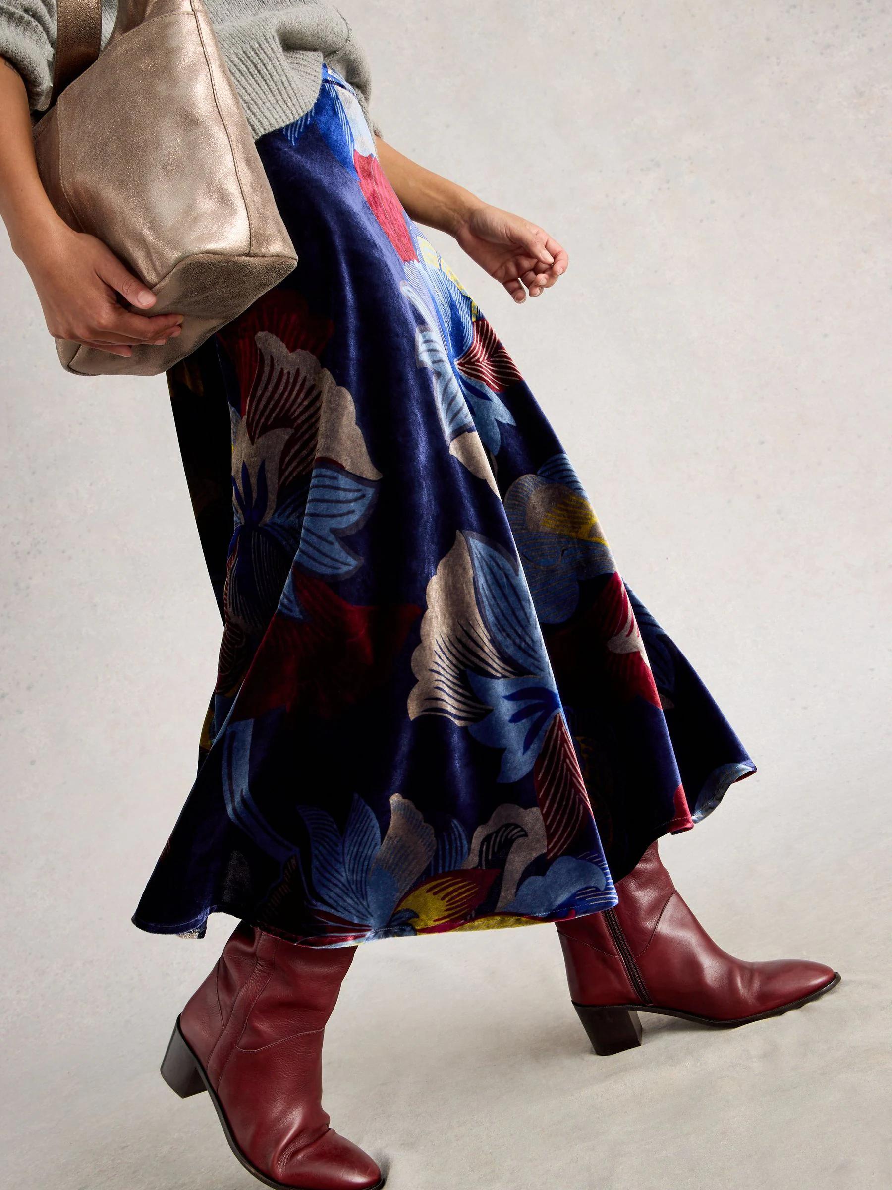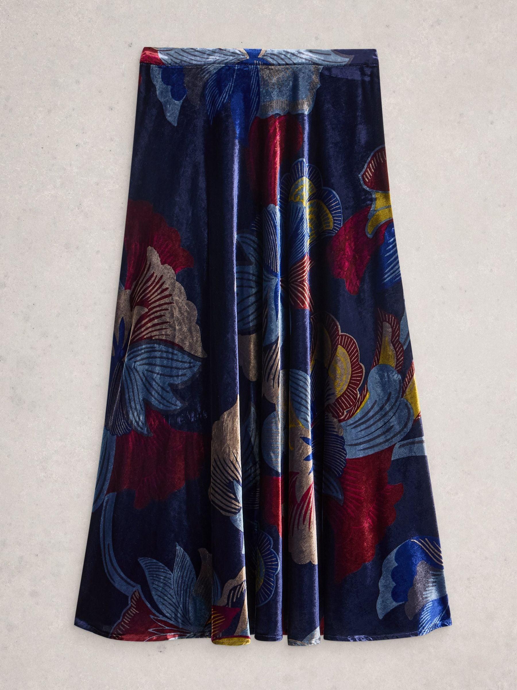White Stuff Blue Hope Bias Cut Velvet Skirt