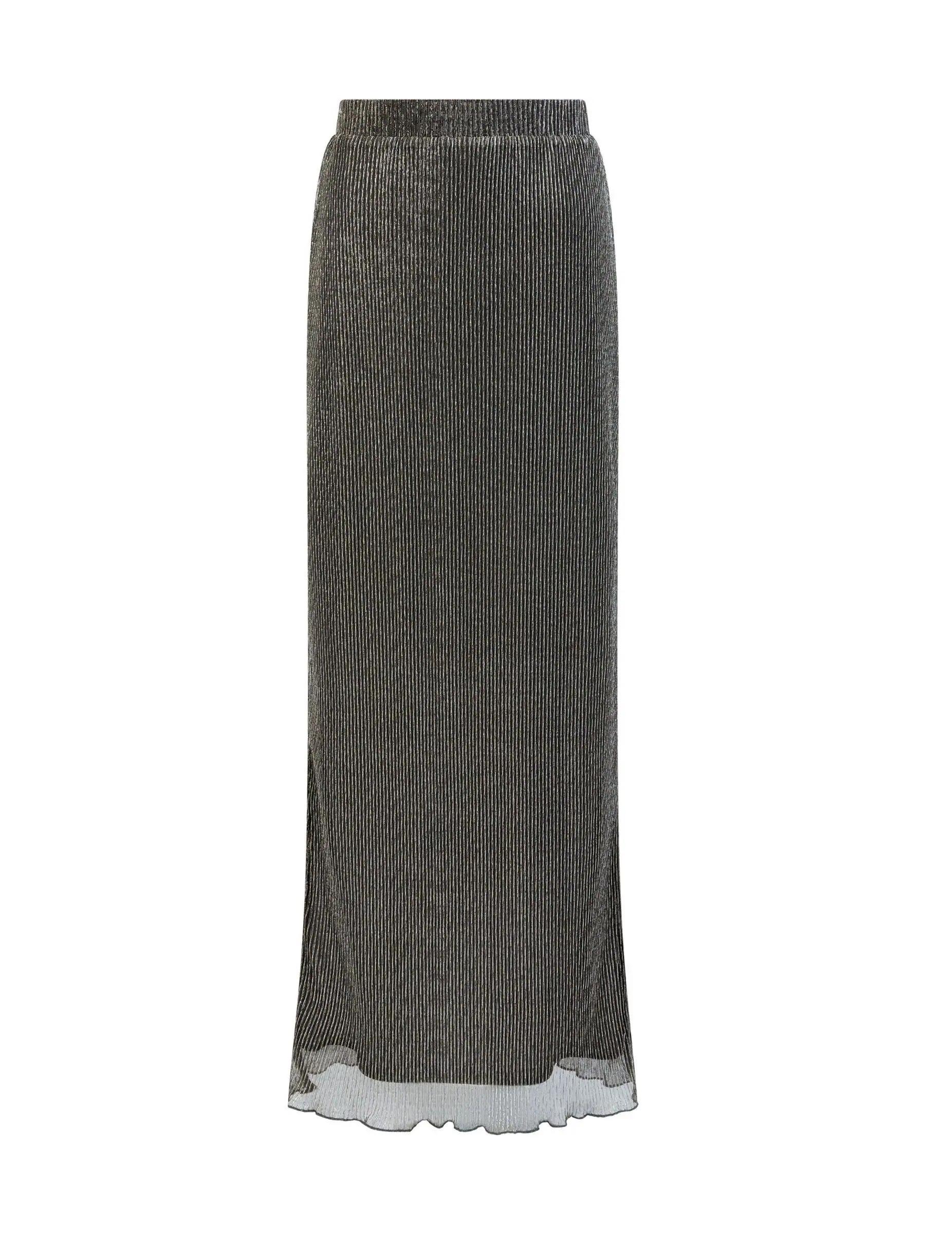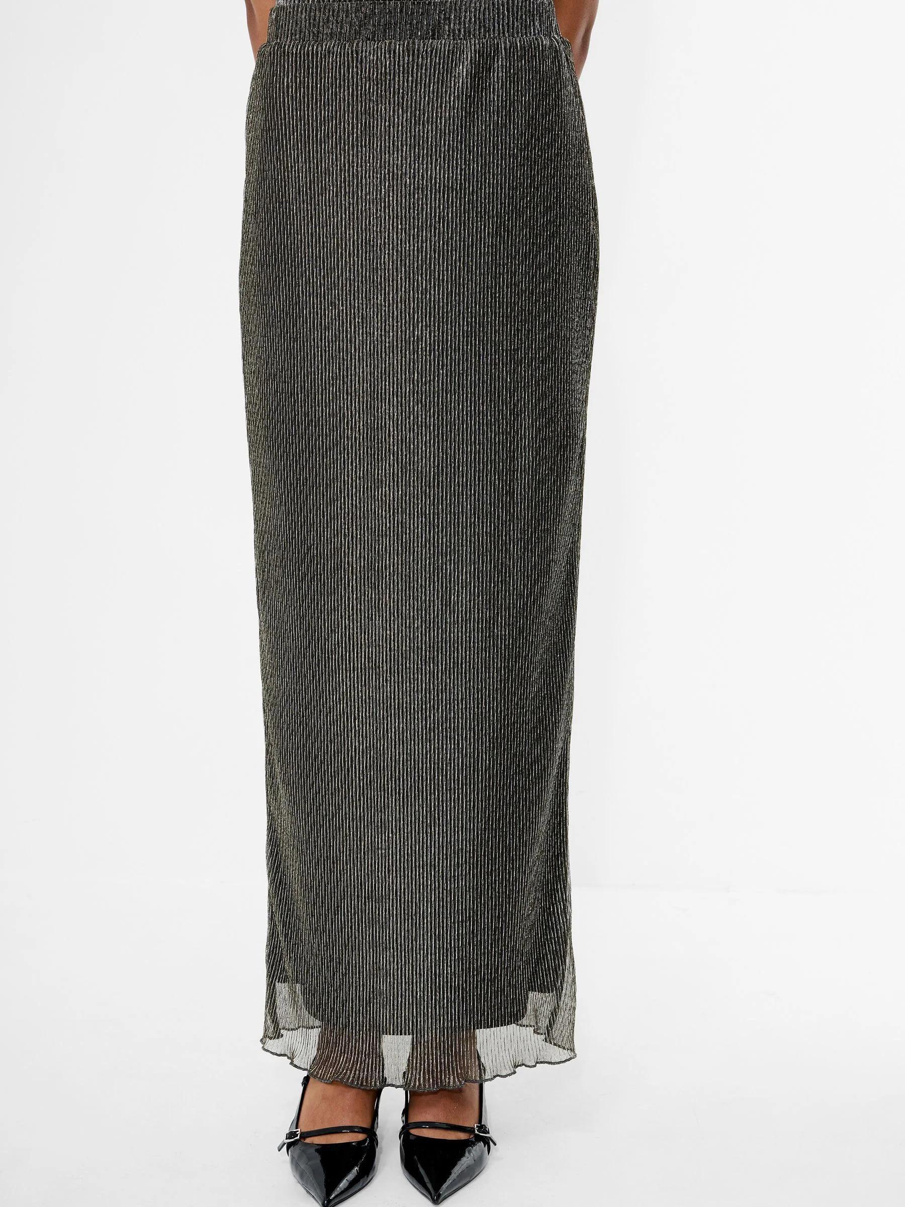 French Connection Black Tamy Lurex Plisse Midi Skirt