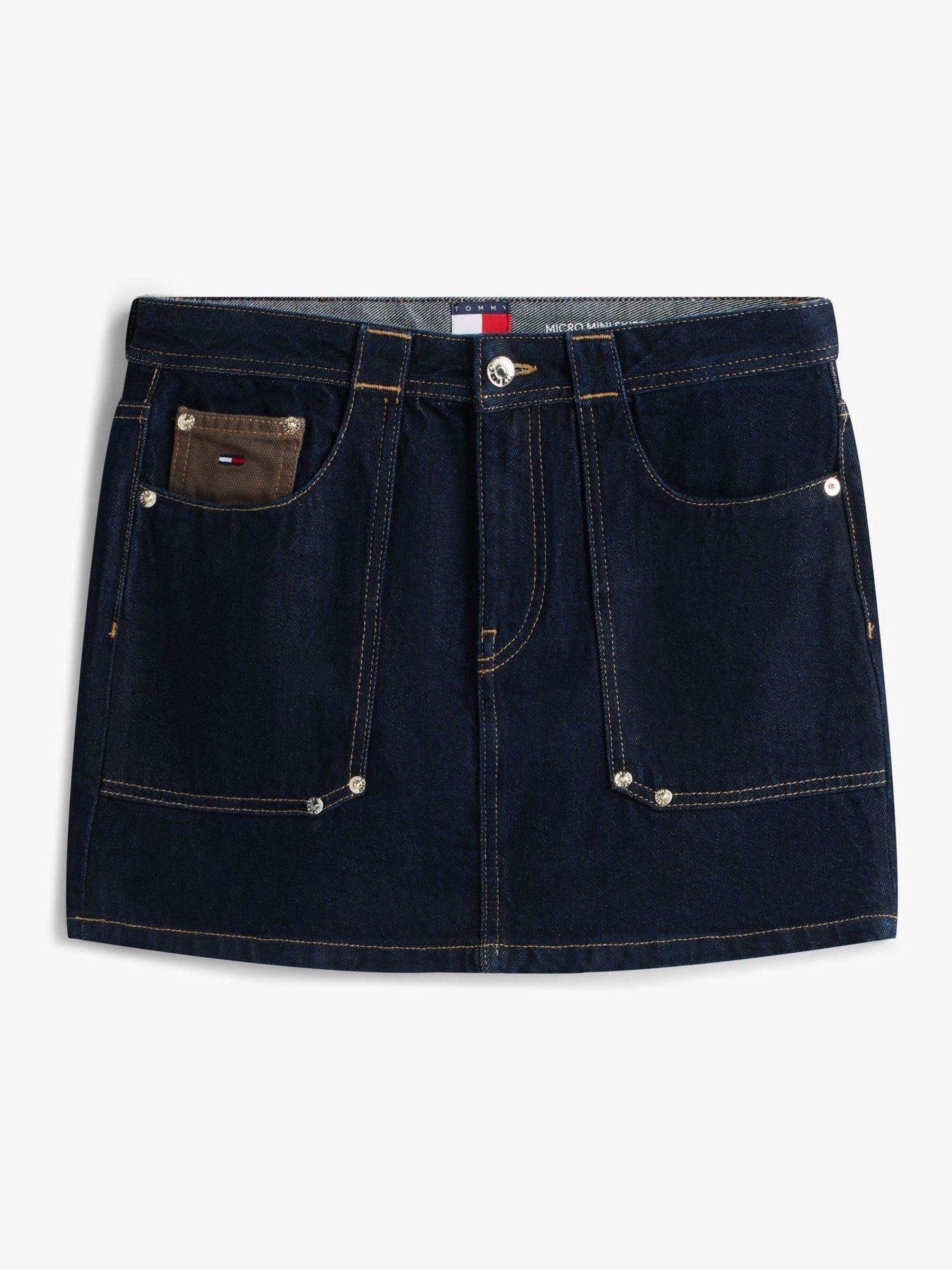 Tommy Jeans Blue Flag Embroidery Denim Straight Mini Skirt