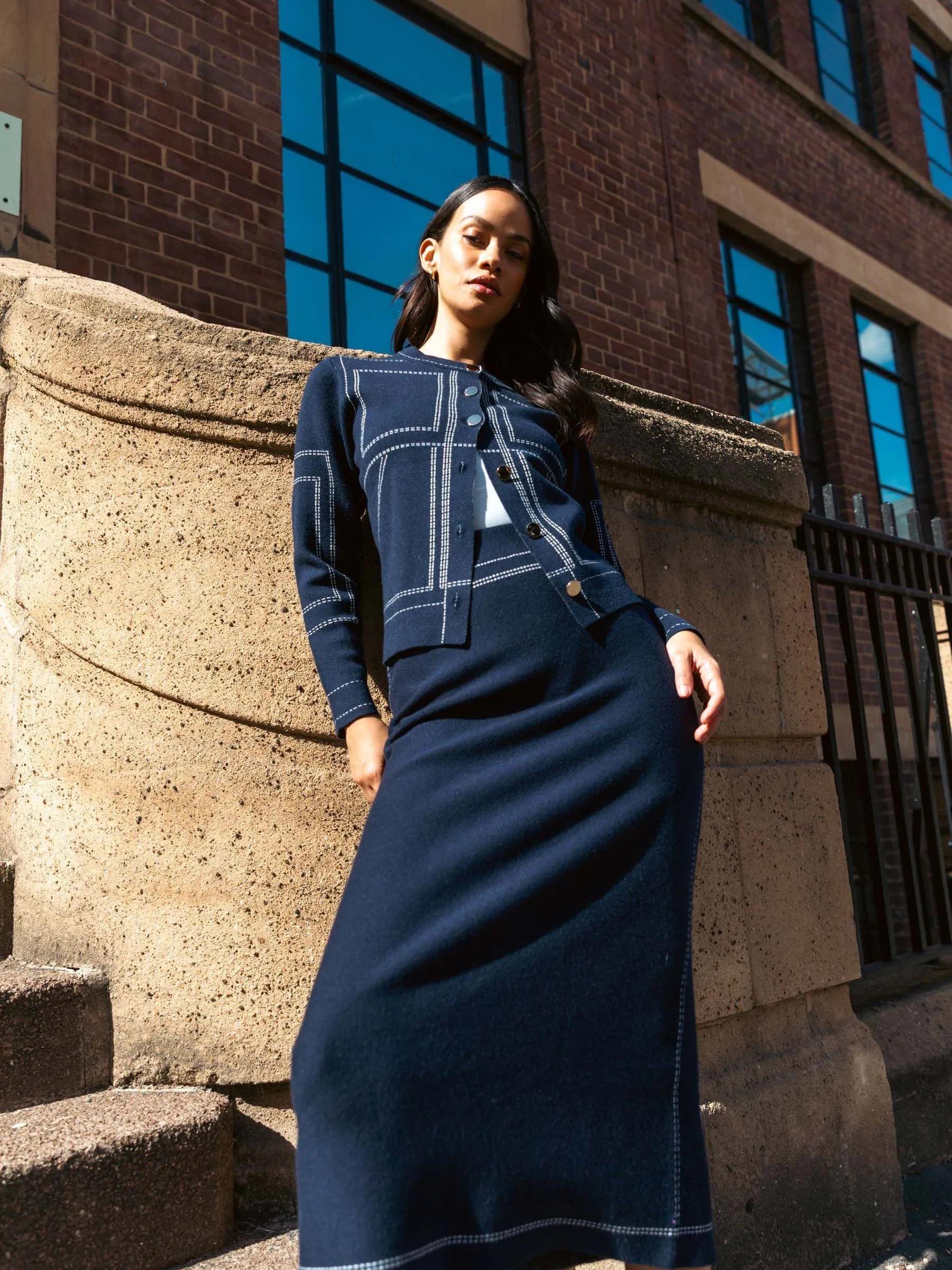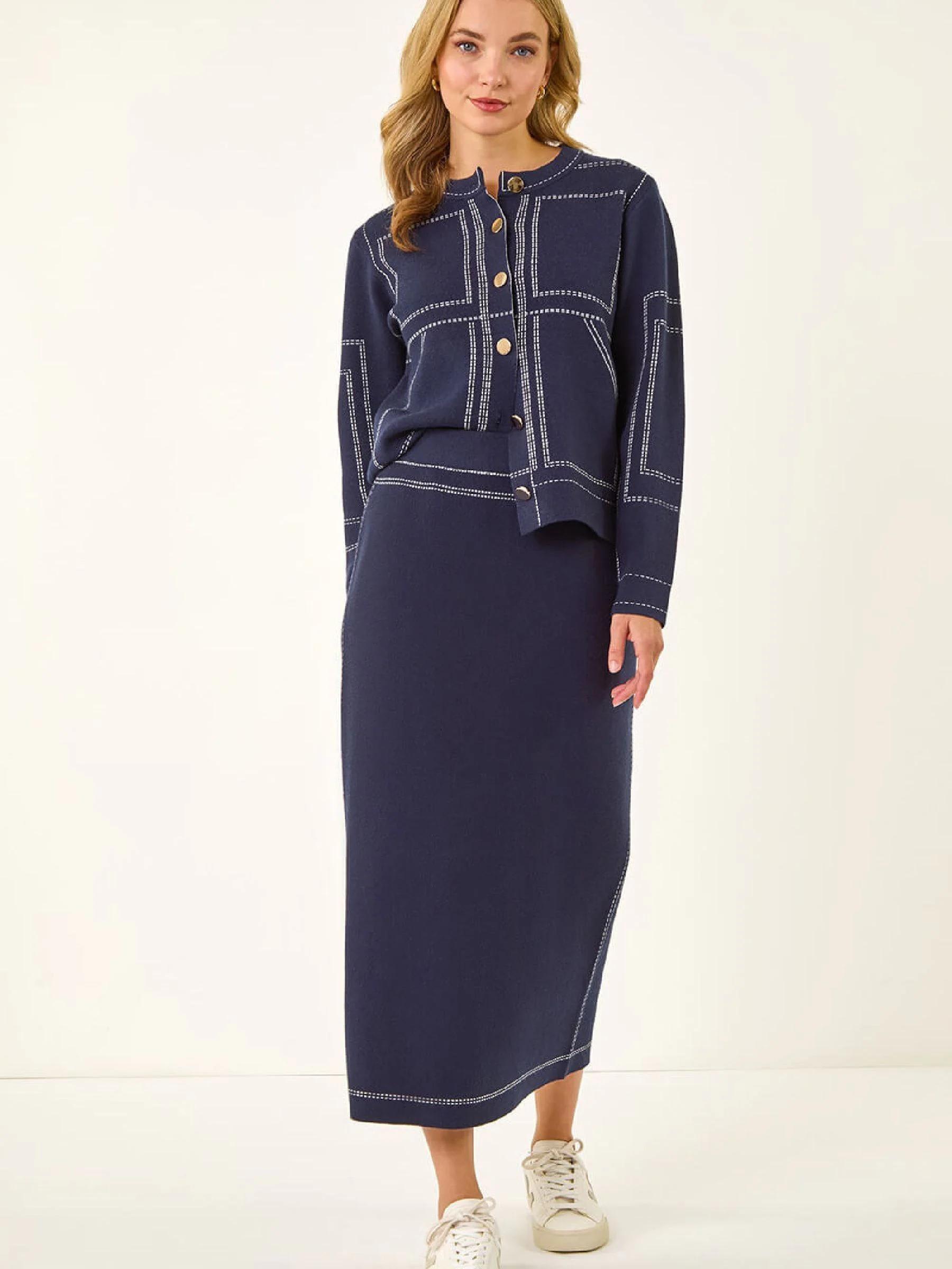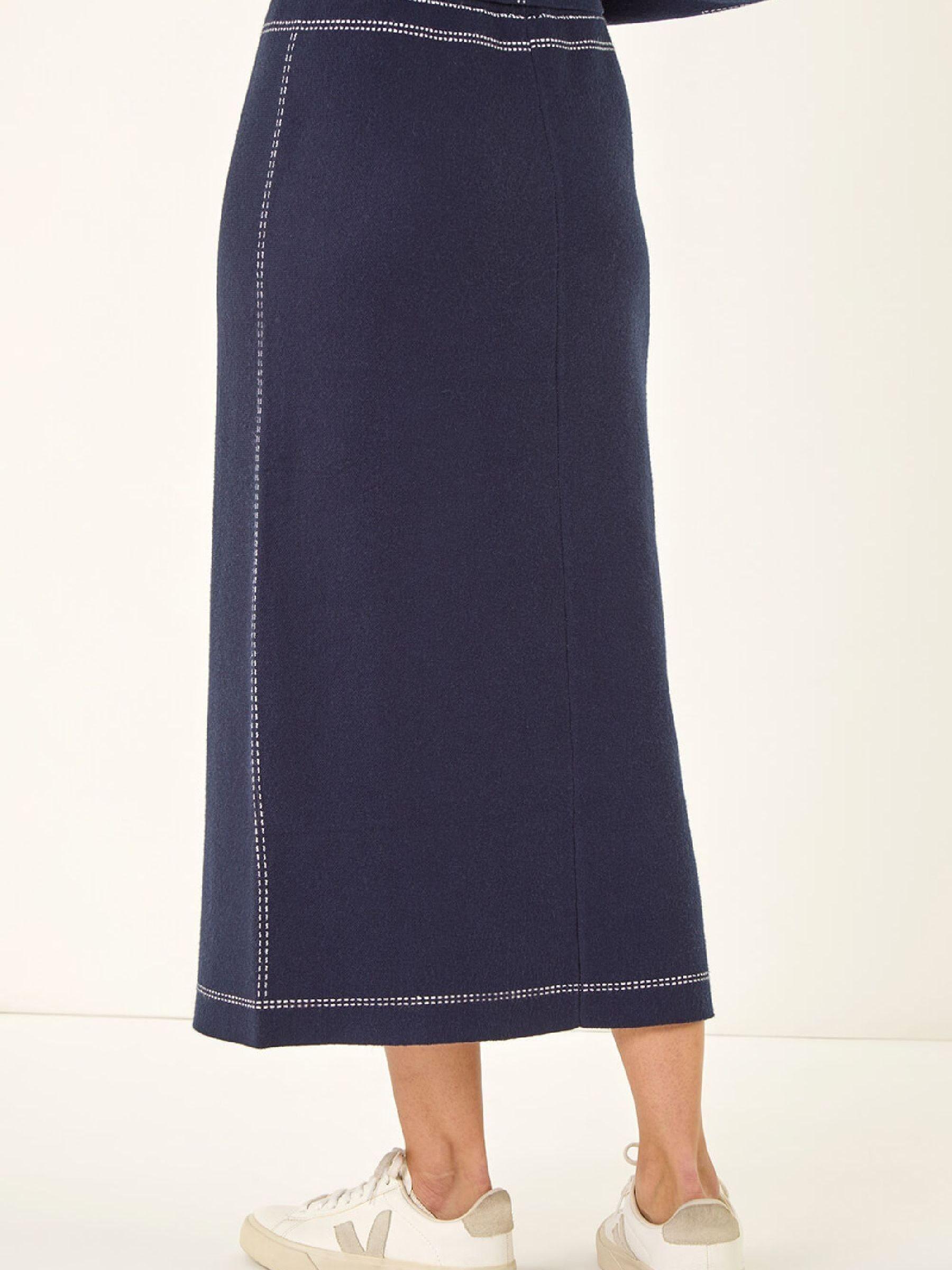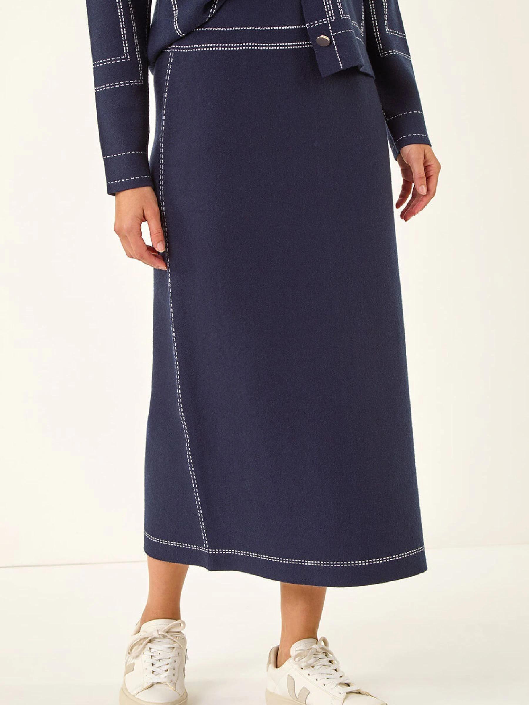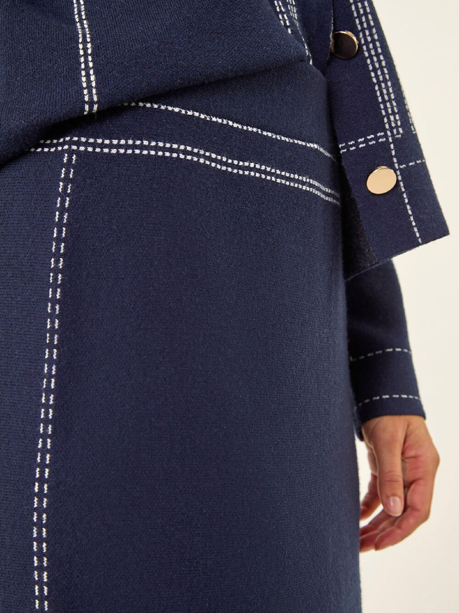 Roman Blue Contrast Stitch Buttoned Skirt